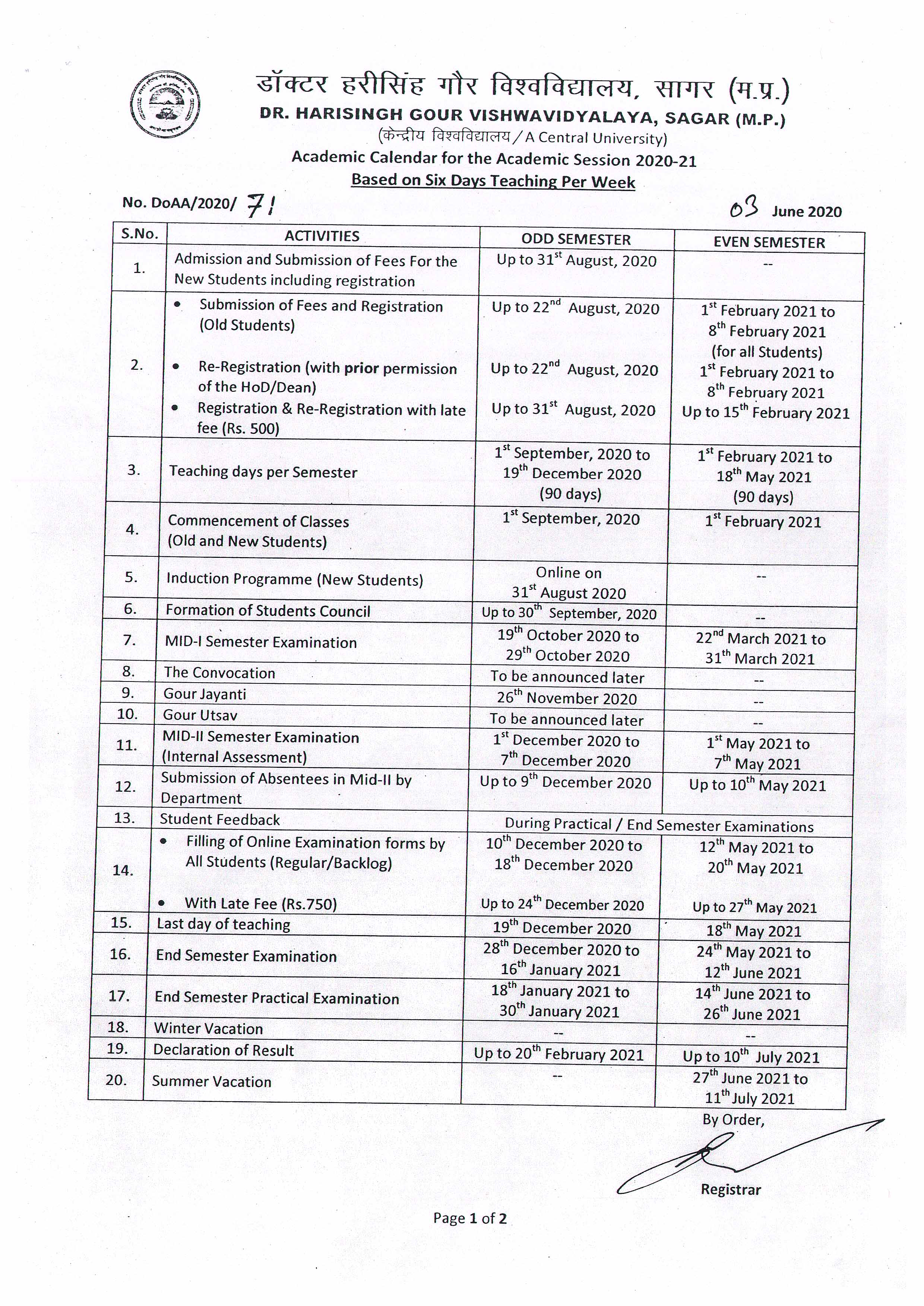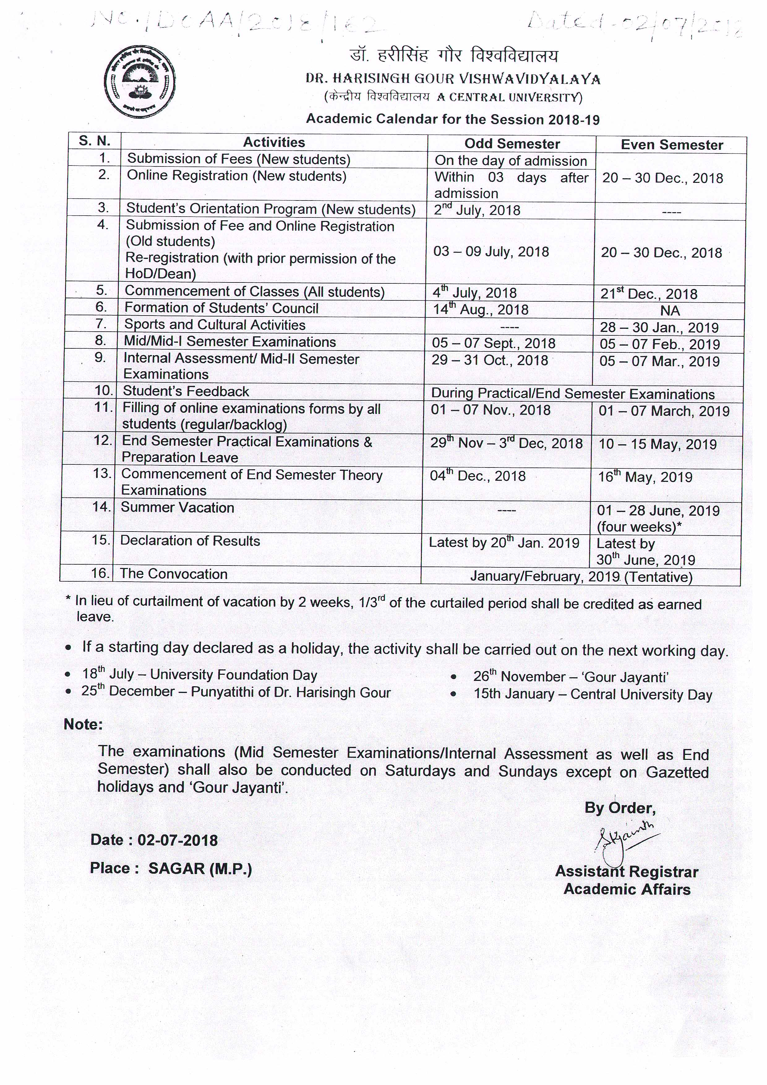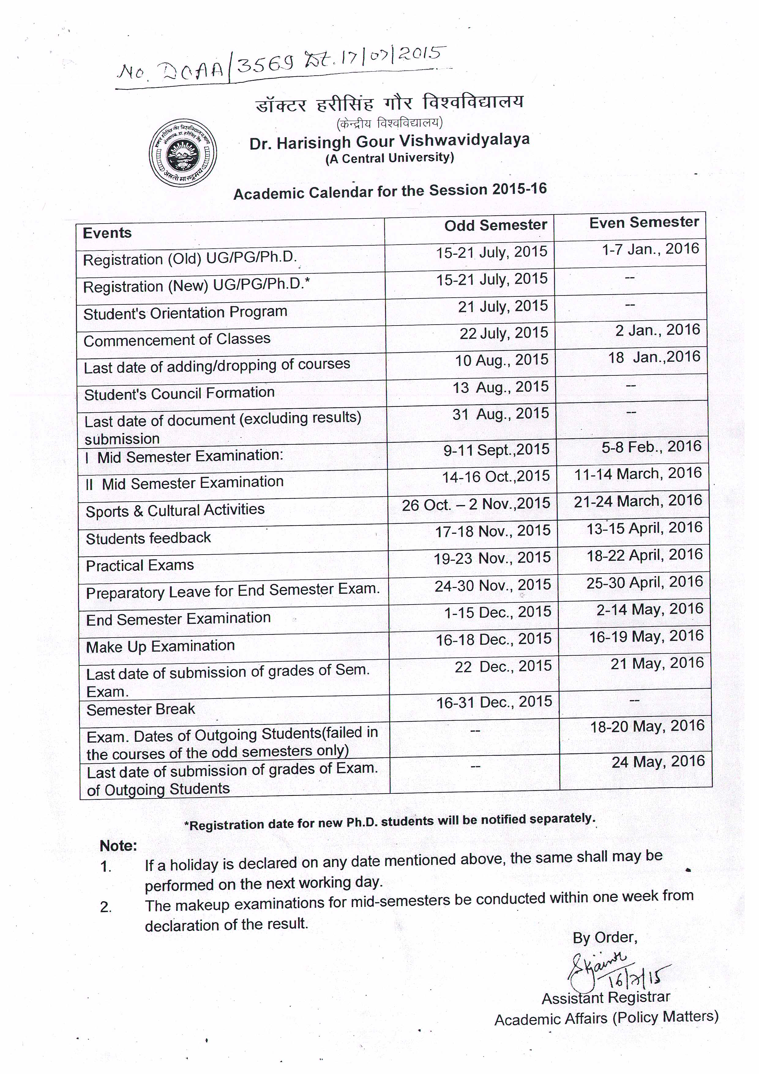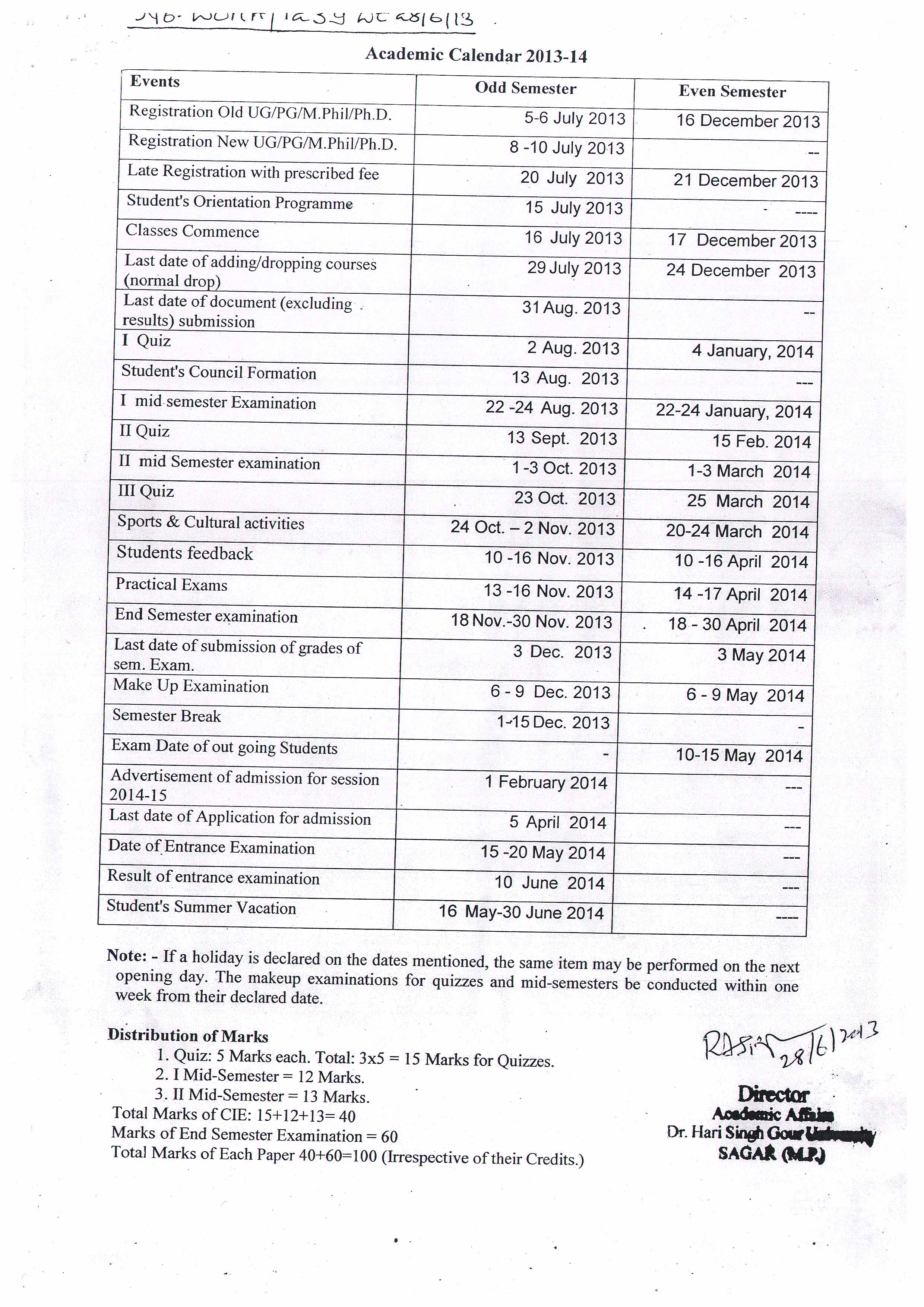 - University Academic Calendar, 2022-23 [III, V, IV & VI Semester]