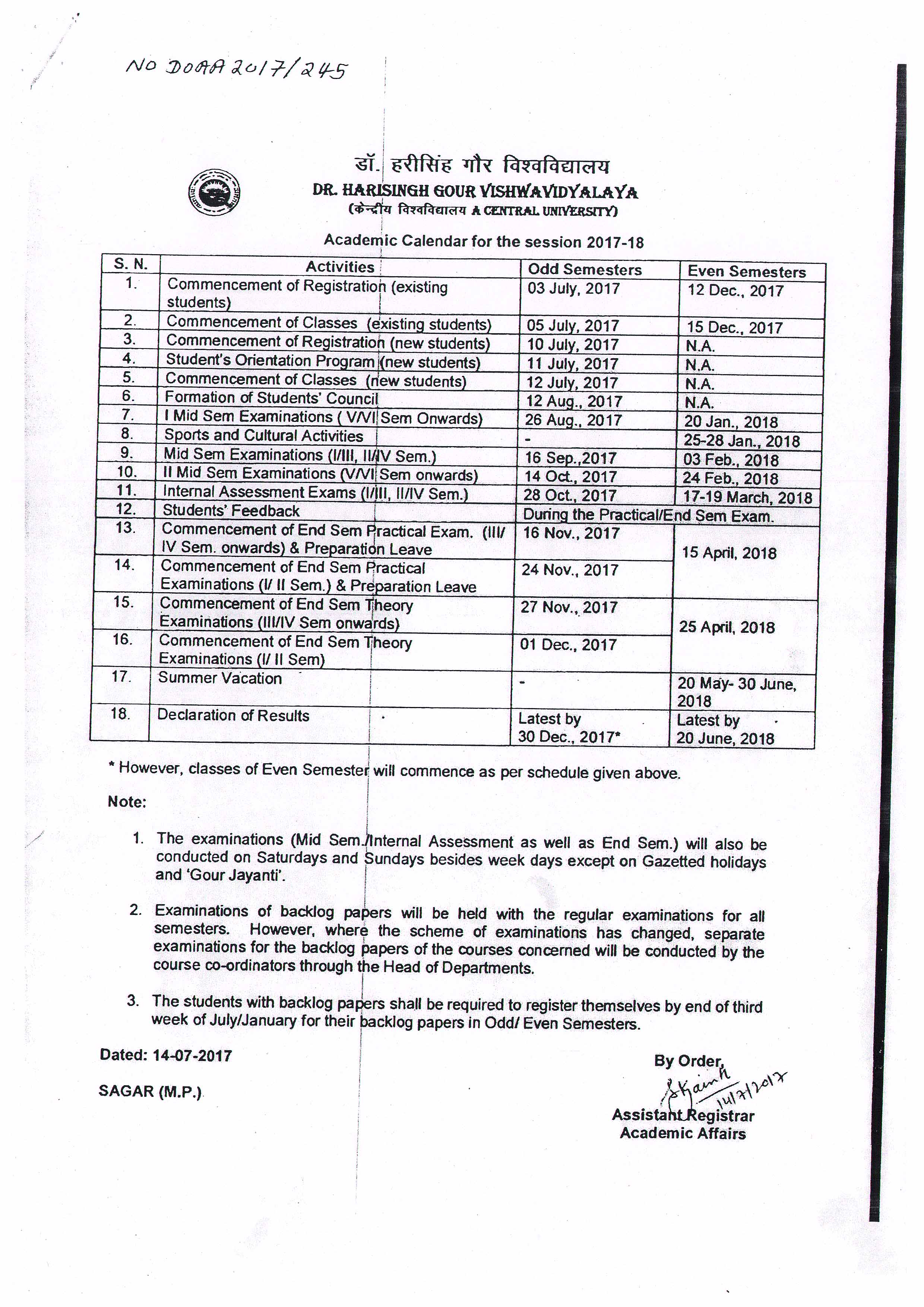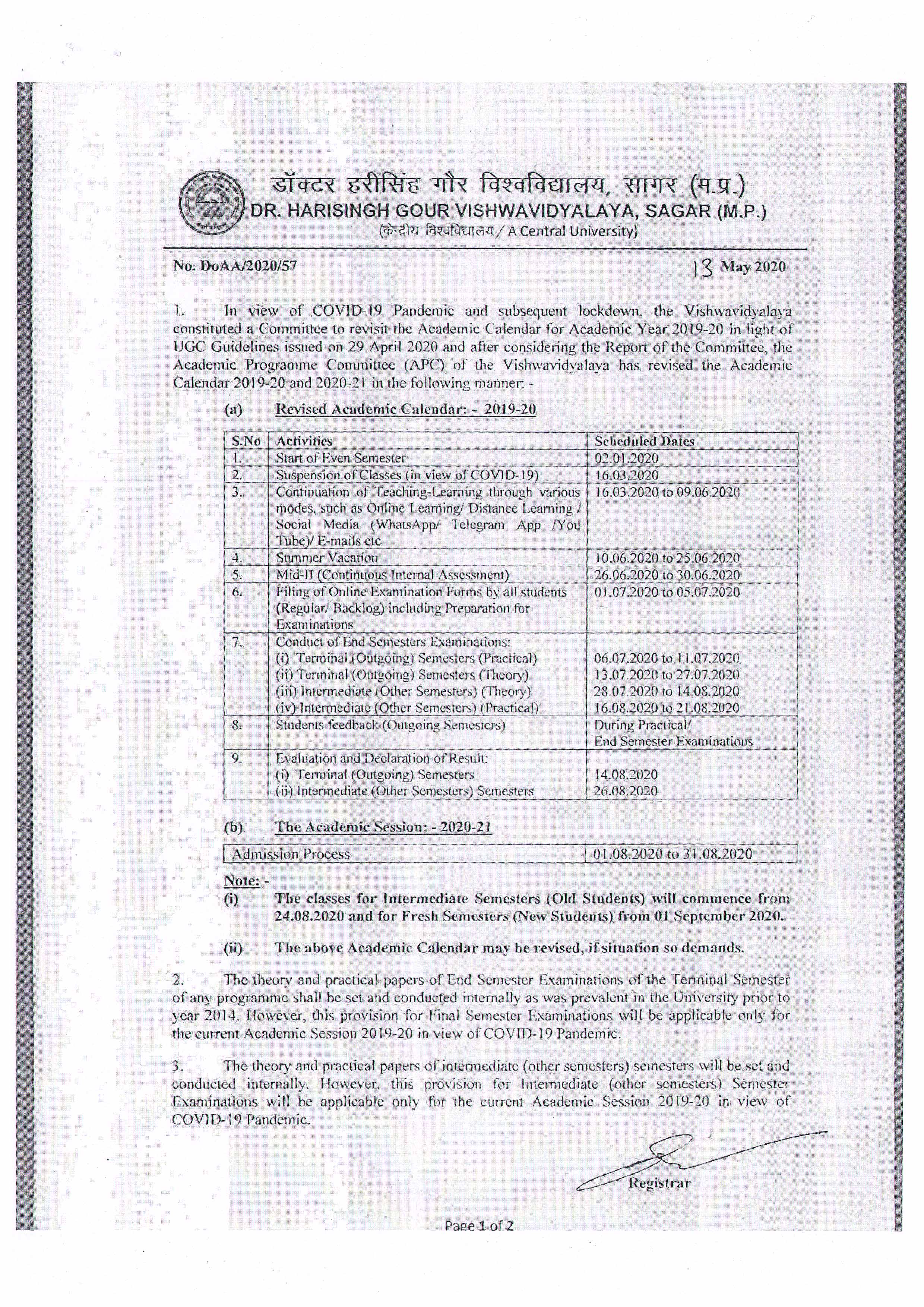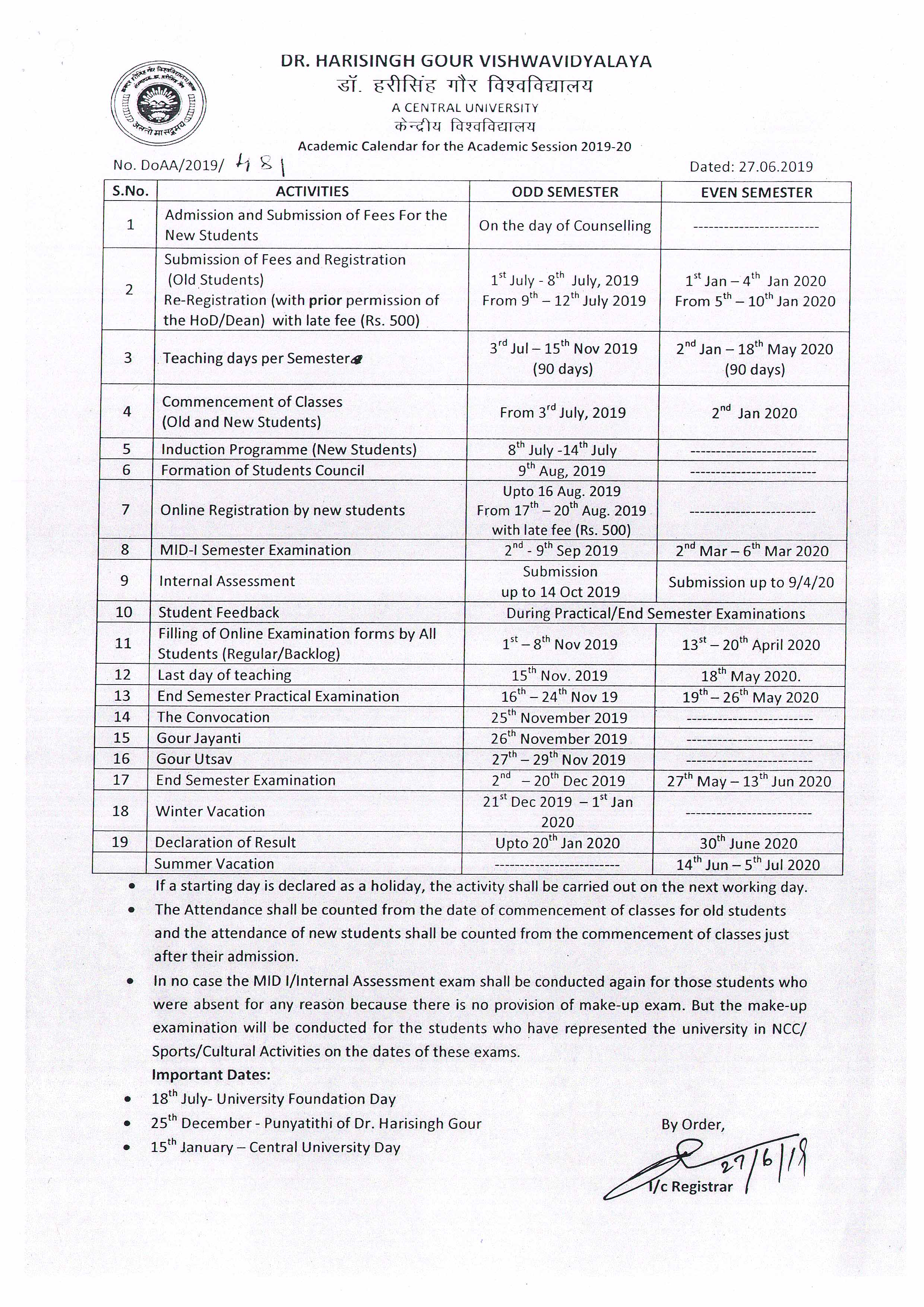 - University Revised Academic Calendar, 2022-23 [II Semester]