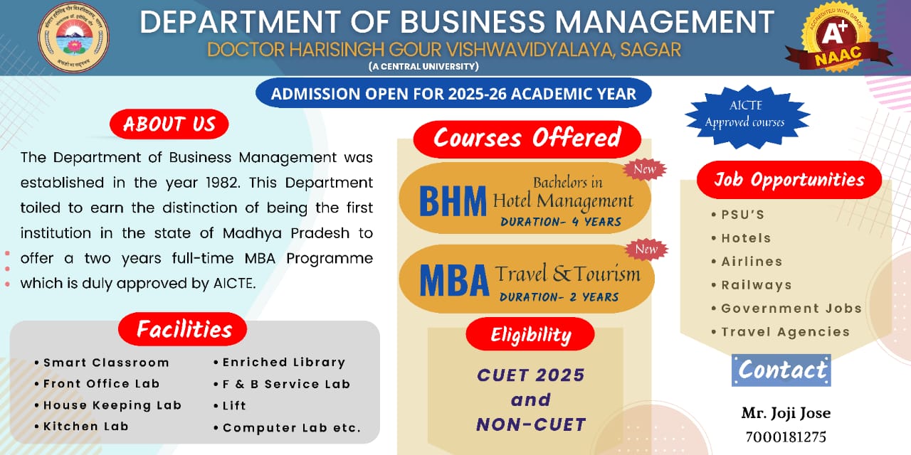 Admission Open for BHM (Bachelor in Hotel Management & MBA (Travel & Tourism) 2025-26 “Dept. of Business Management" "Disp.No. DBM/515,Dt.29-07-2025" पूर्ण जानकारी हेतु संलग्नक देखे