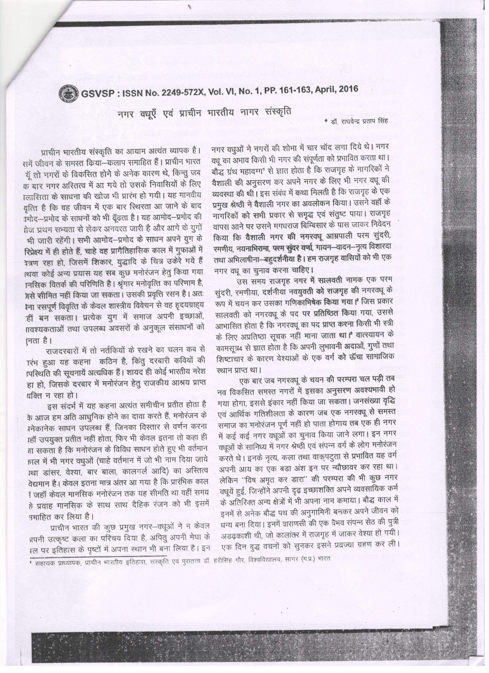 25 | Dr. Raghvendra Pratap Singh | Gyandayini: A Peer Review Journal | Nagar Vadhuyen Evam Prachin Bhartiya Nagar Sanskriti | 2016 | Download |