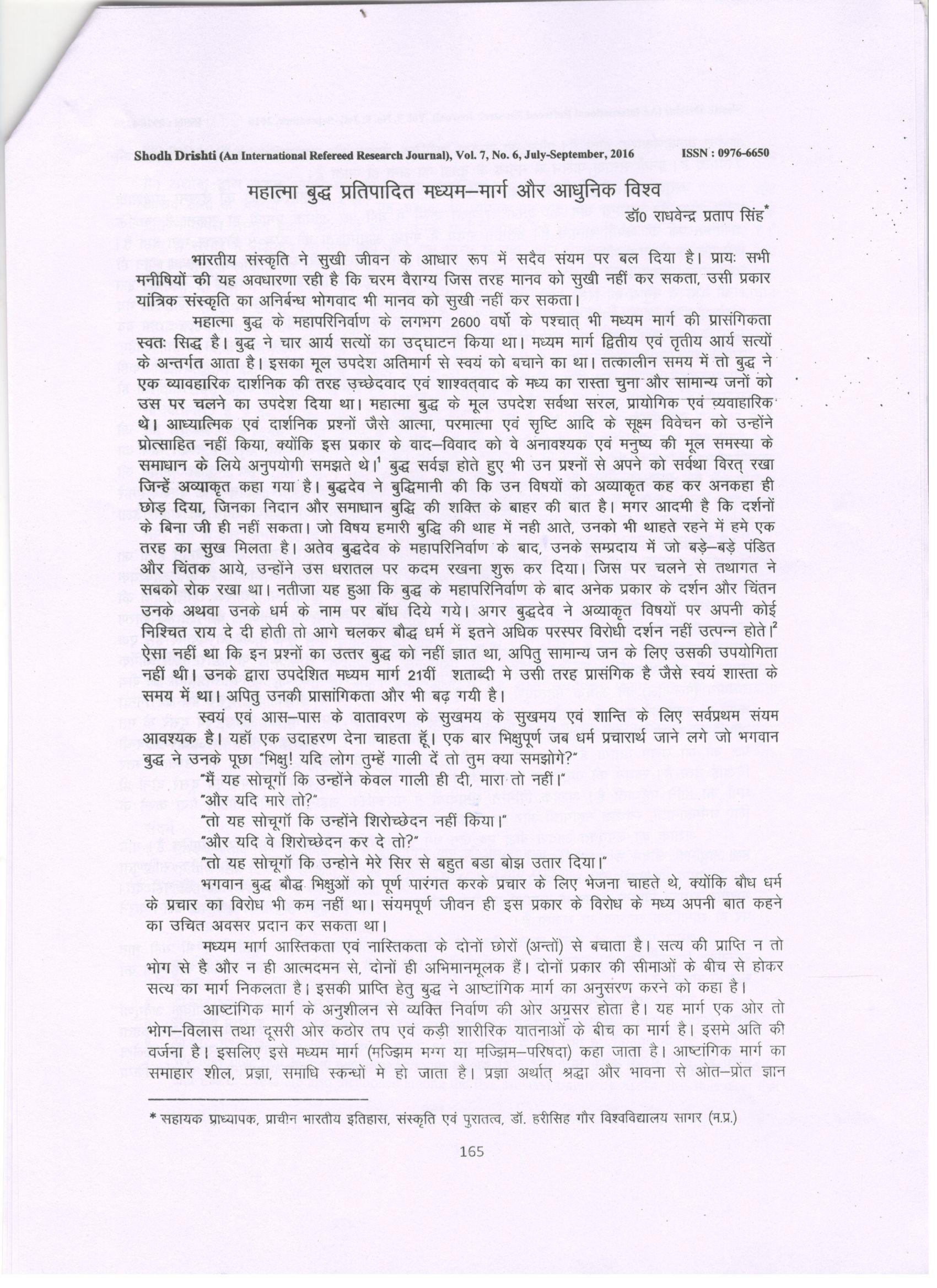 Shodh Drishti | Mahatama Buddha Pratipadit Madhyam Marg Aur Adhunik Viswa, | 2016 | Download |