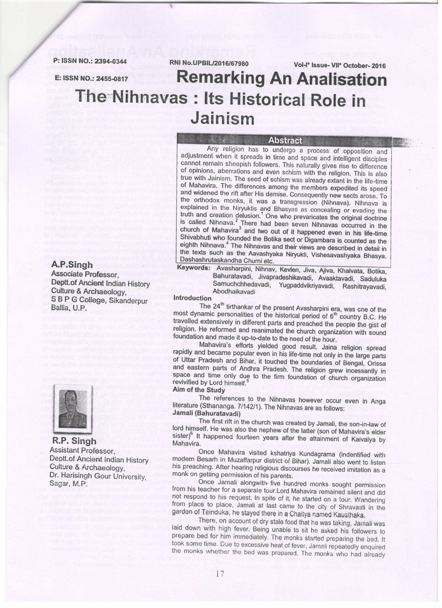 Remarking : An Analization | The Nihnavas : Its Historical Role in Jainism | 2016 | Download |