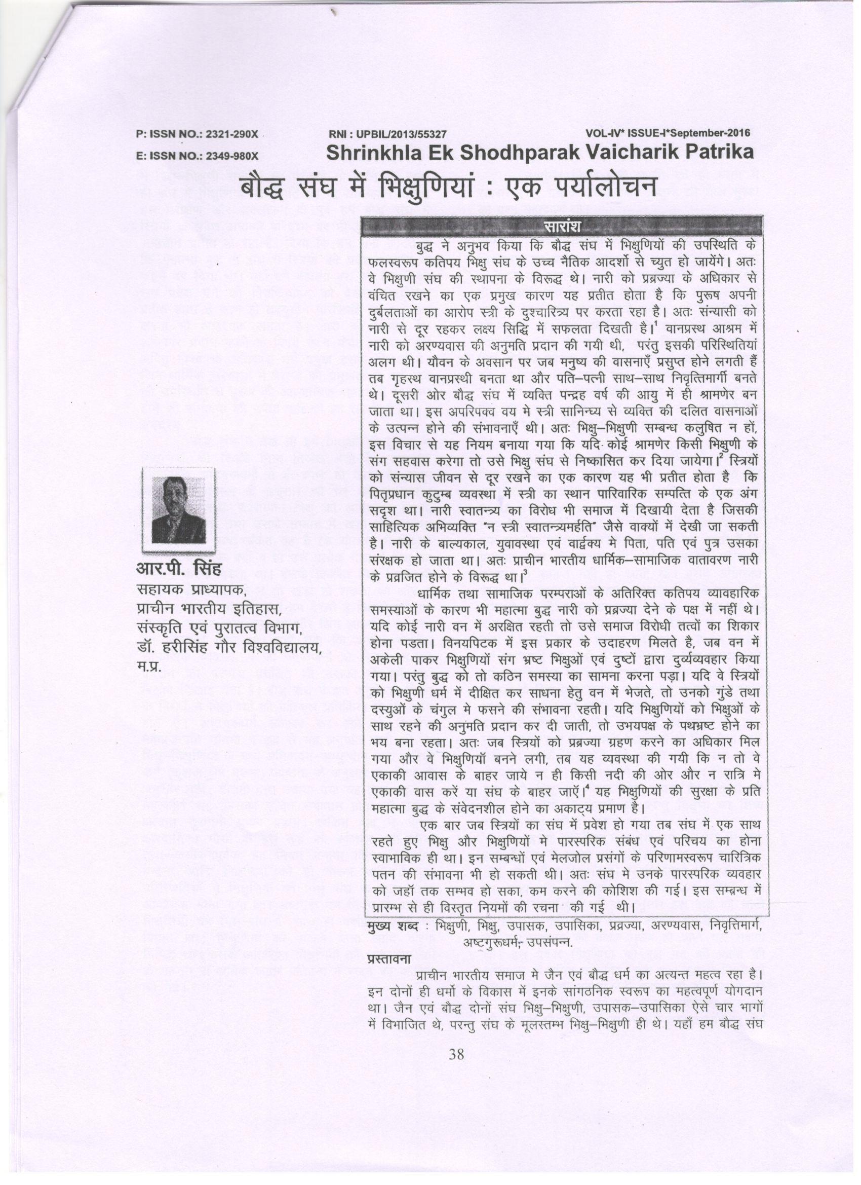 Shrinkhla : A multi Disciplinary | Bauddha Sangha mein Bhikshuniya: Ek Paryalochna | 2016 | Download |