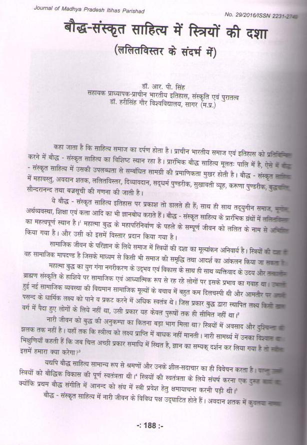 26 | Dr. Raghvendra Pratap Singh | Madhya Pradesh Itihas Parishad | Bauddha Sanskrit Sahitya Meion Striyon Ki Dasha (Lalit Vistar Ke Sandarbh Mein) | 2016 | Download |