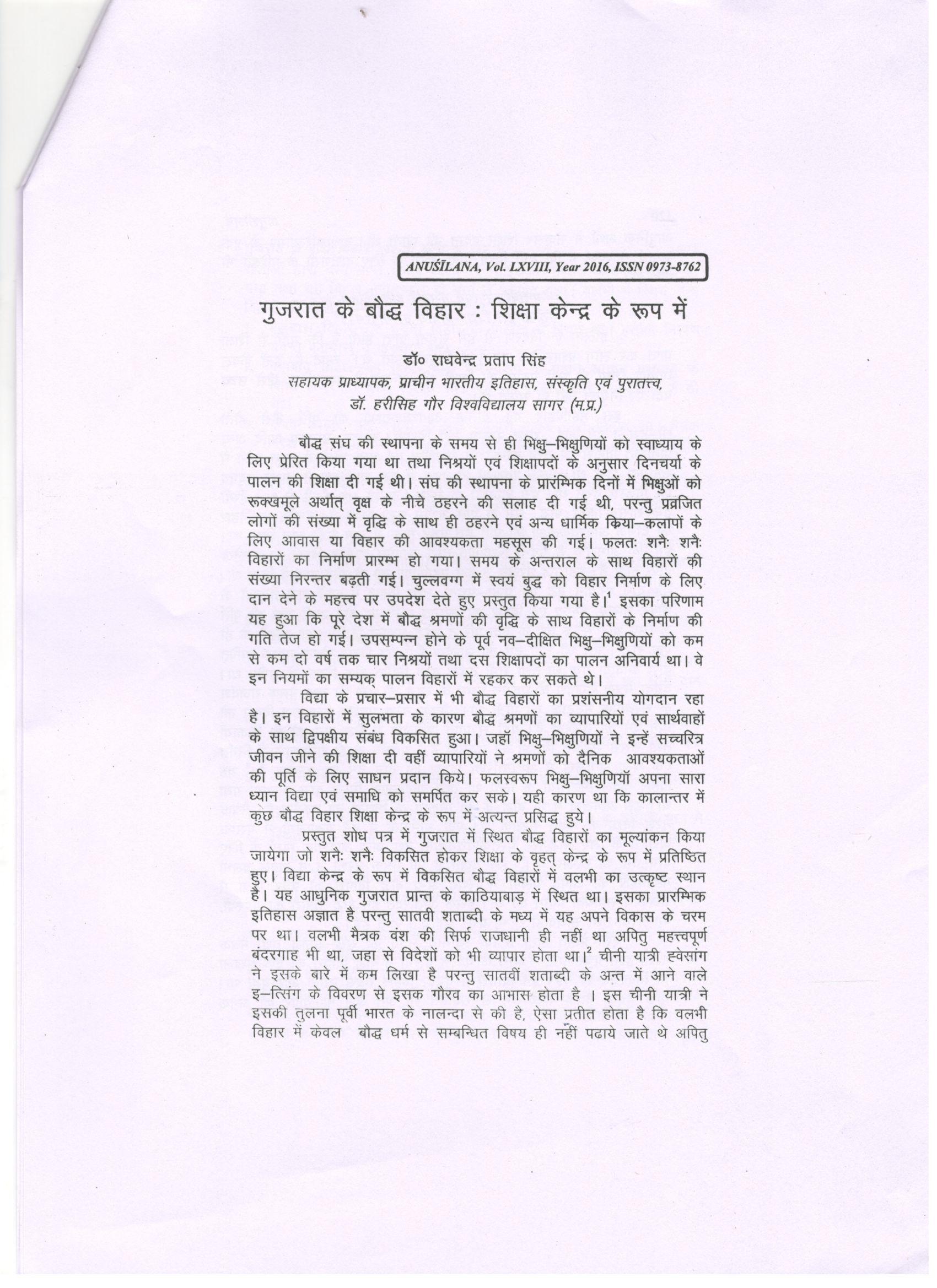 28 | Dr. Raghvendra Pratap Singh | Anusilan | Gujrat Ke Bauddha Vihar Siksha Kendra Ke Roop Mein | 2016 | Download |