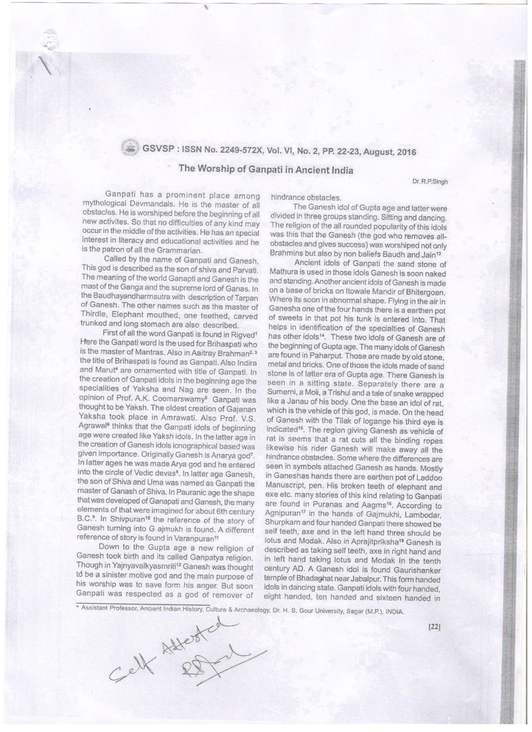 29 | Dr. Raghvendra Pratap Singh | Gyandayini A Peer Review Journal | Worship of Ganpati in ancient India | 2016 | |