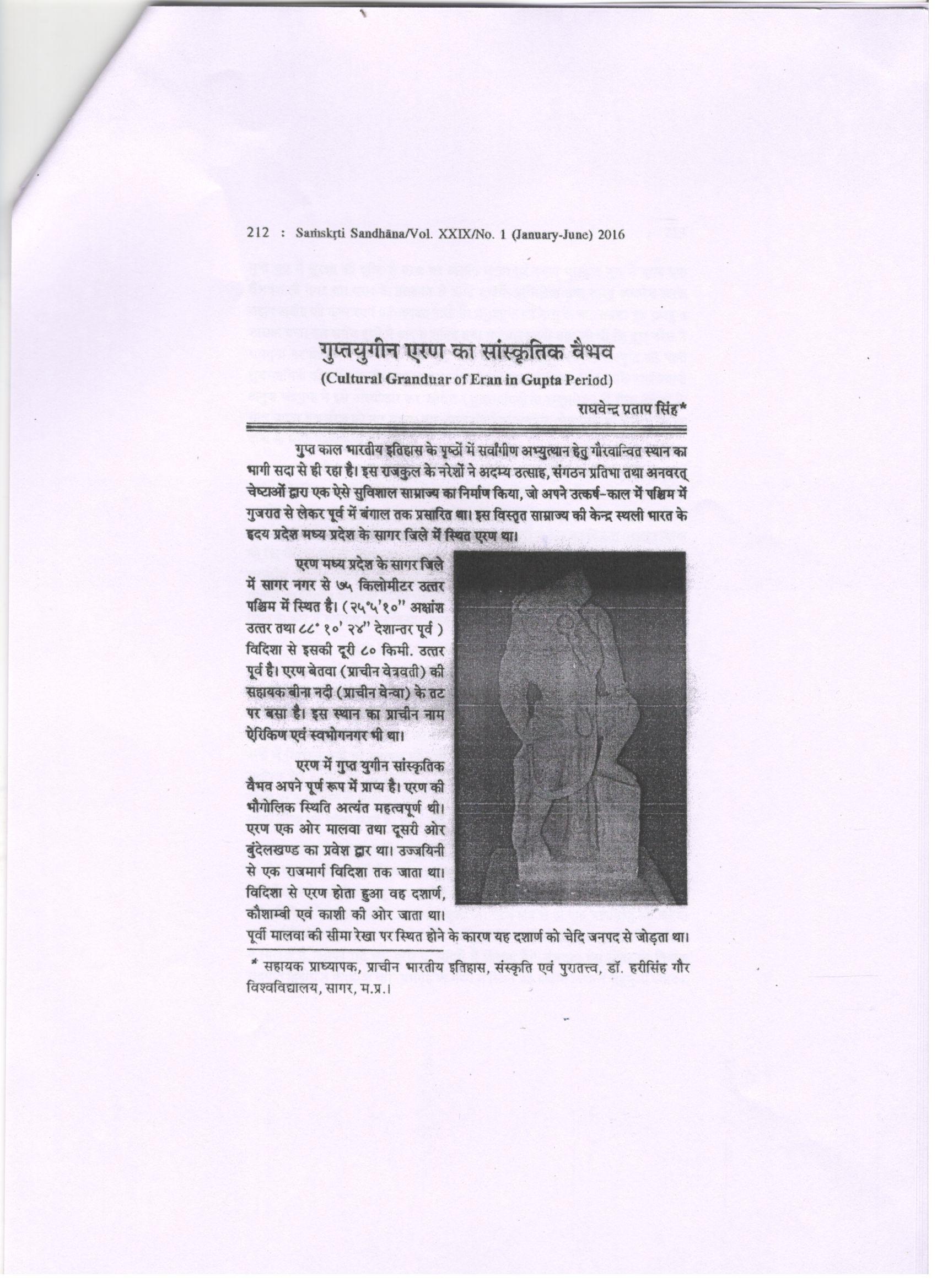 30 | Dr. Raghvendra Pratap Singh | Samskriti Sandhan | Gupta Yugin Eran Ka Sanskritik Vaibhav | 2016 | Download |