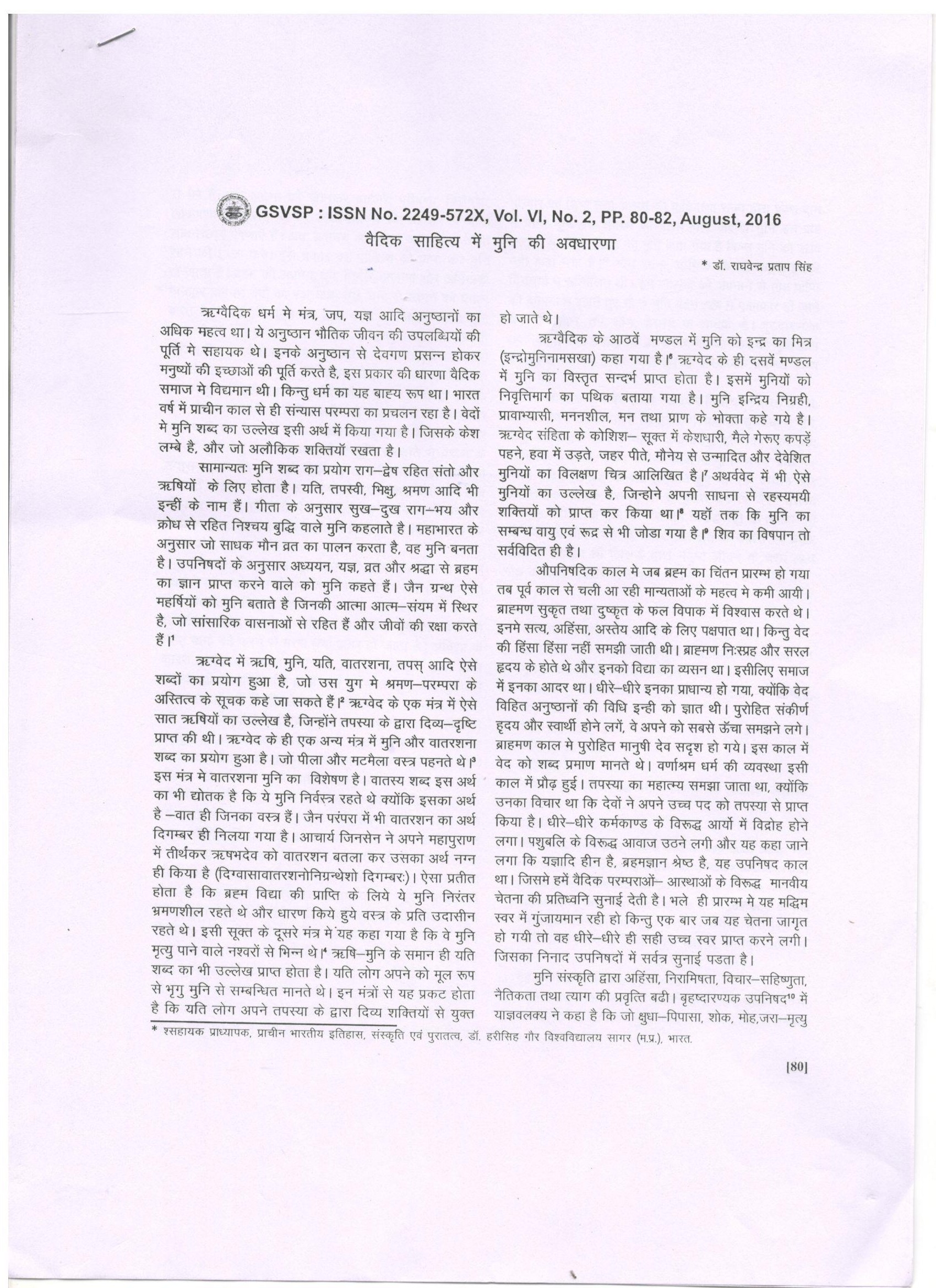 31 | Dr. Raghvendra Pratap Singh | Gyandayini A Peer Review Journal | Vedic Sahitya Mein Muni Ki Avadharana | 2016 | Download |