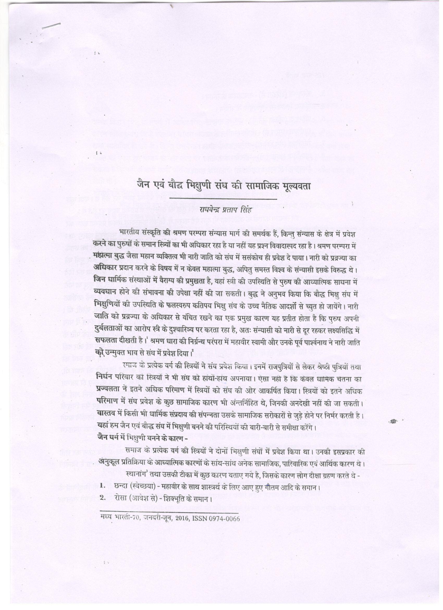 32 | Dr. Raghvendra Pratap Singh | Madhyabharti | Jain Evam Bauddha Bhikshuni Sangh Ki Samajik Mulyavatta | 2016 | Download |