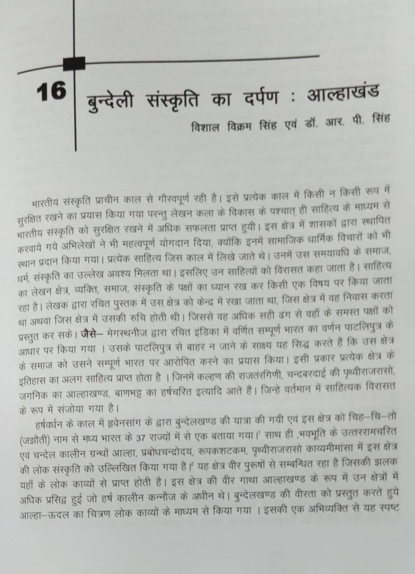 18 | Dr. Raghvendra Pratap Singh | Madhya Pradesh ki Kala Sanskriti Avm Puratatva | Bundeli Sanskriti Ka Darpan : Alhakhand | 2017 | Download |