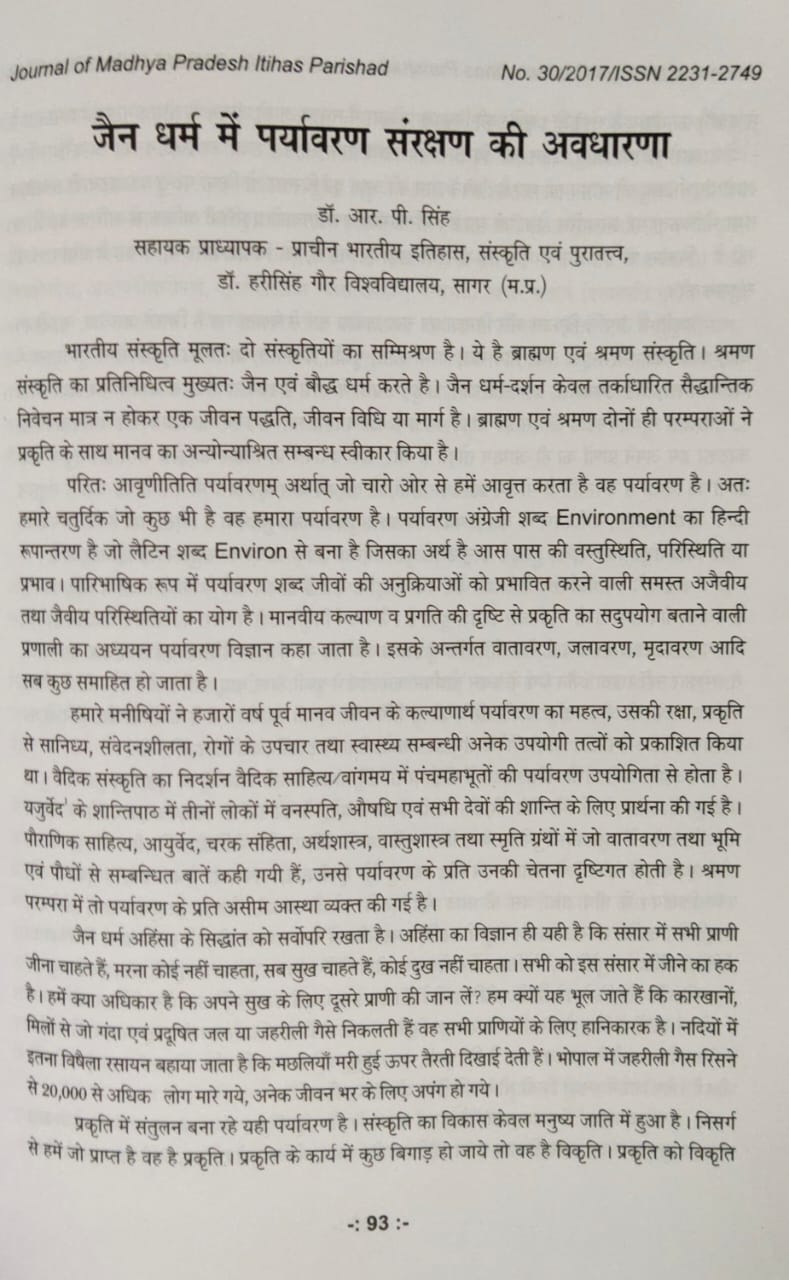 19 | Dr. Raghvendra Pratap Singh | Madhya Pradesh Itihas Parishad | Jain dharma Mein Paryavaran Sanrakshn Ki Avadharana | 2017 | Download |