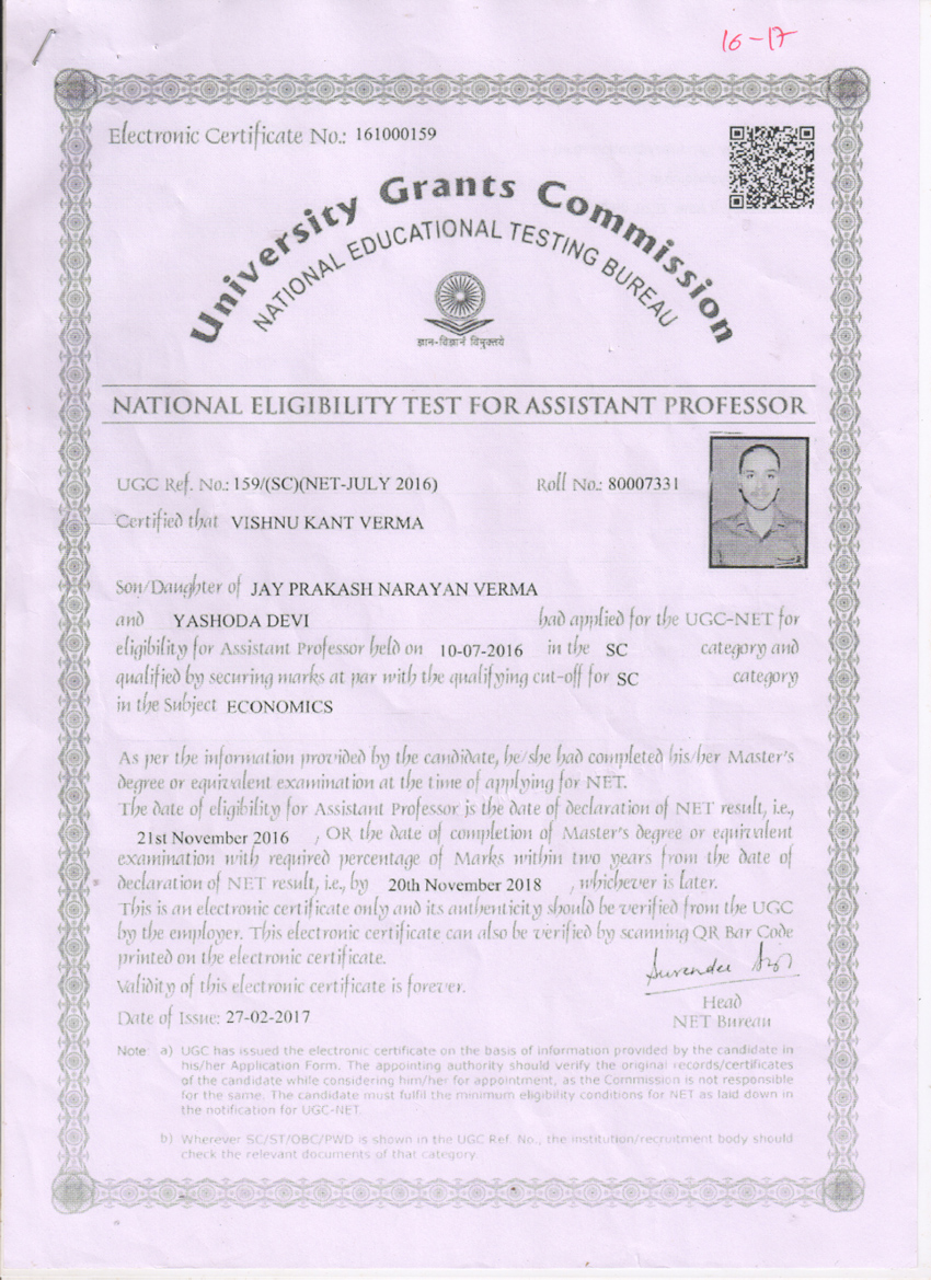 1 | Vishnu Verma | 2017 | 2017-2022 | UGC-JRF | UGC | NET/JRF | view |