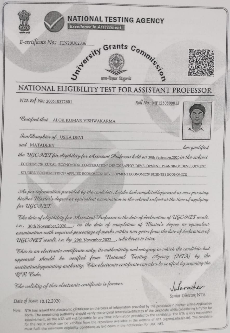 2 | Alok Kumar Vishwakarma | 2019 | 2020-2022 | UGC-JRF | UGC | NET/JRF | view |
