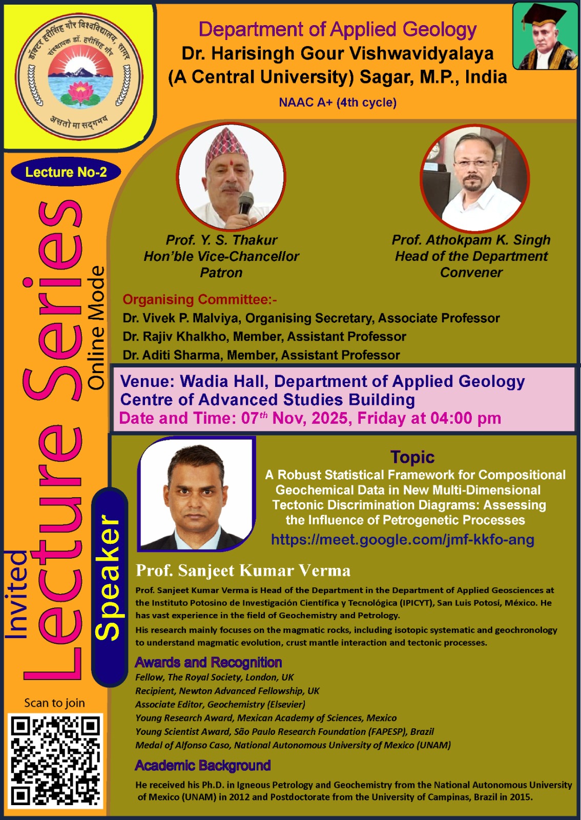Department of Applied Geology is organizing the 2nd Invited Talk “Dept. Applied Geology" "Disp.No.-/-, Dt.31-10-2025" पूर्ण जानकारी हेतु संलग्नक देखे