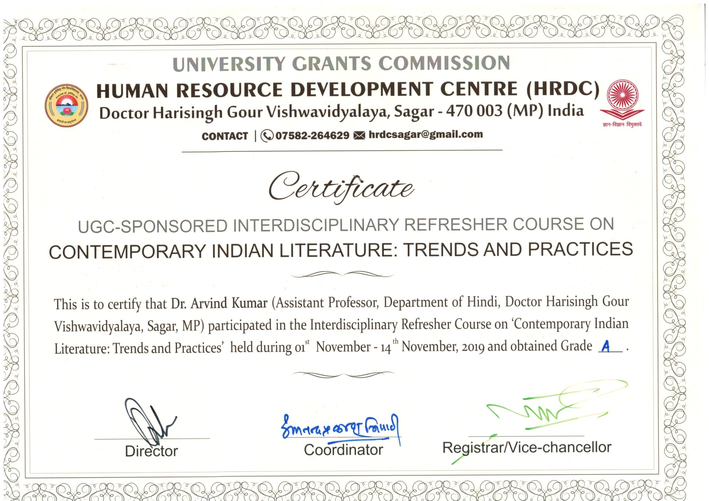 2019 | Dr. Arvind Kumar | Contemporary Indian Literature : Trends And Practices | 02-11-2019 to 14-11-2019 (14 Days) |