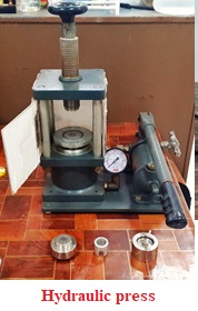 A hydraulic press is an instrument that is used to make pellets of powder samples. Specifications: