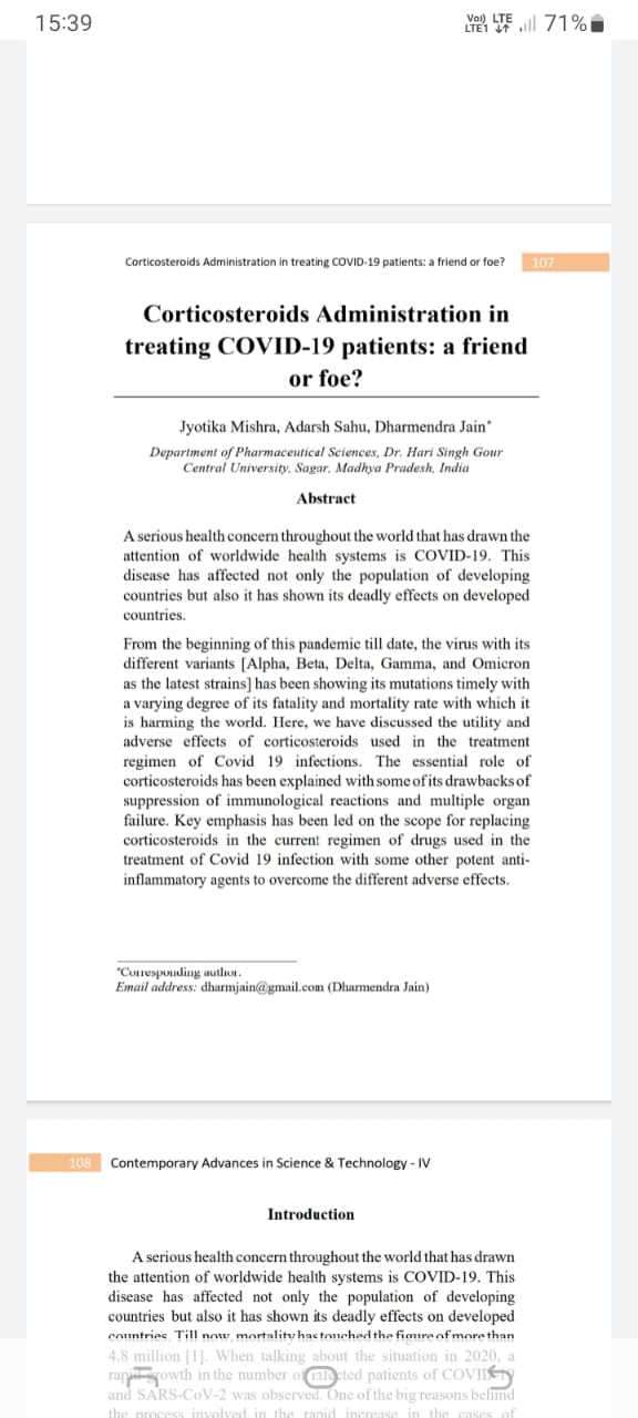 Haider T, Gour V, Pandey V, Kanwar IL, Tiwari R, Vishwakarma M, Bakshi AK, Sarkar A, Yadav R, Sakshi, Soni V. |