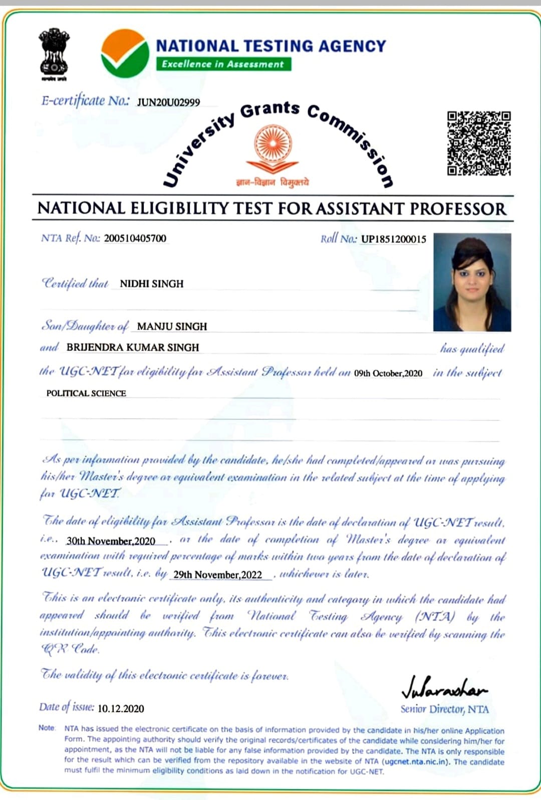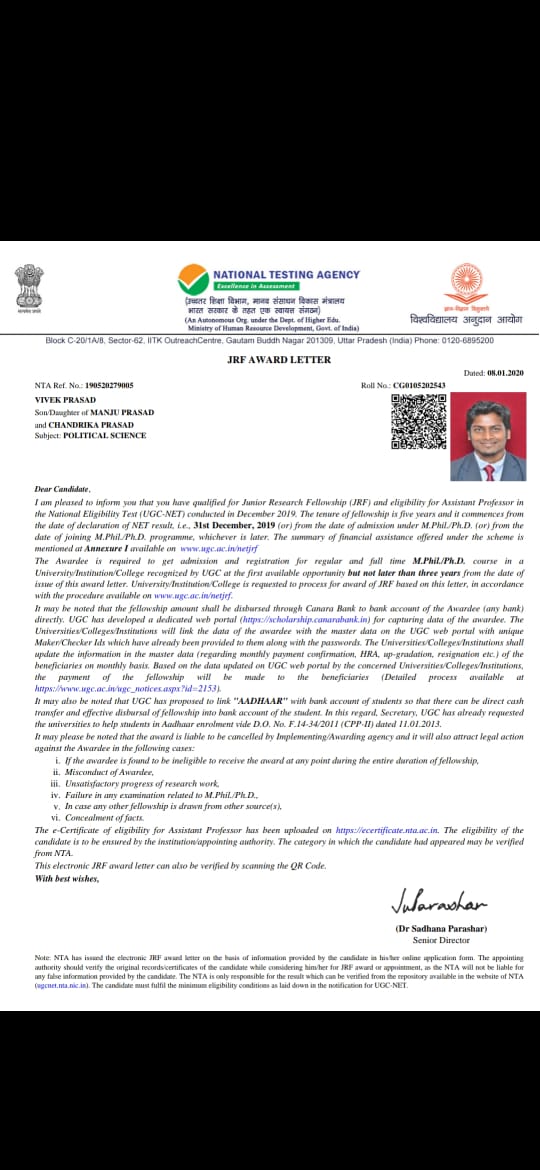 Y19426001 | 29/08/2019 | (Joined As Assistant Professor in Chattisgarh on 1/04/2022) |