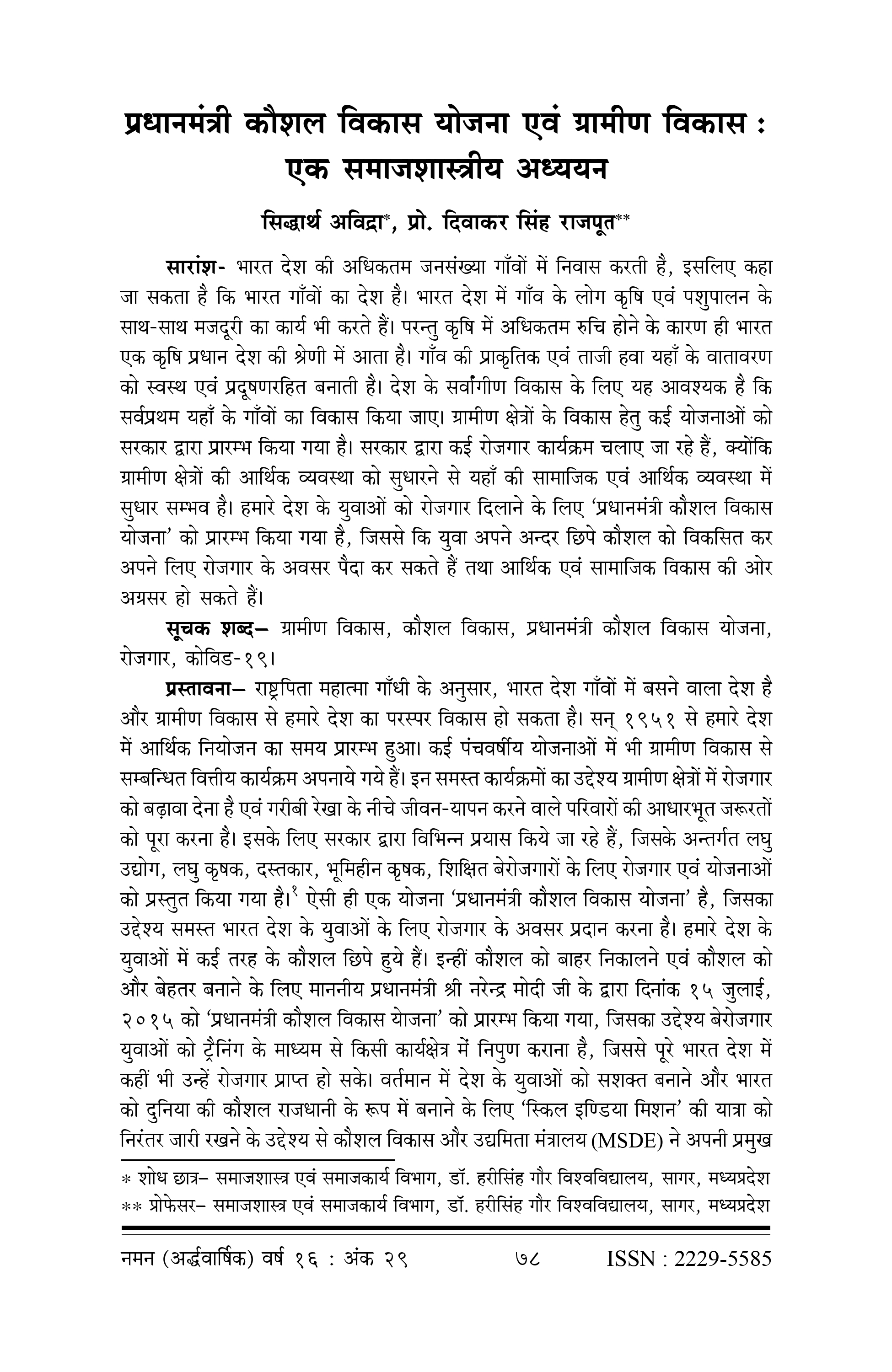 Prof. Diwakar Singh Rajput & Siddharth Abidra | प्रधानमंत्री कौशल विकास योजना एवं ग्रामीण विकास एक समाजशास्त्रीय अध्ययन | 2023 | Download |