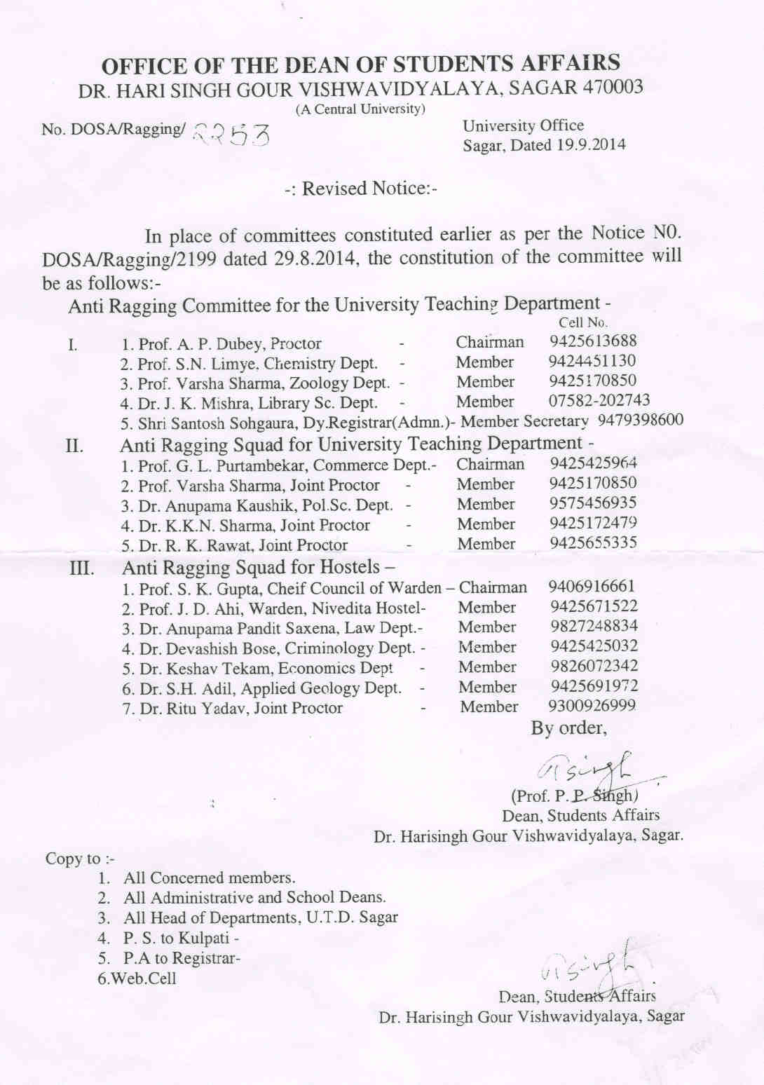 19-09-2014 Revised Notice- Anti - Ragging Committee 19-09-2014