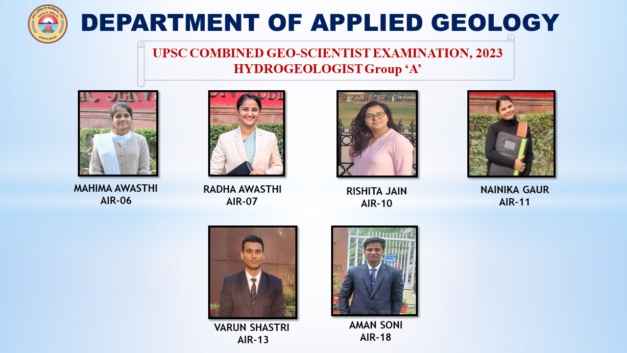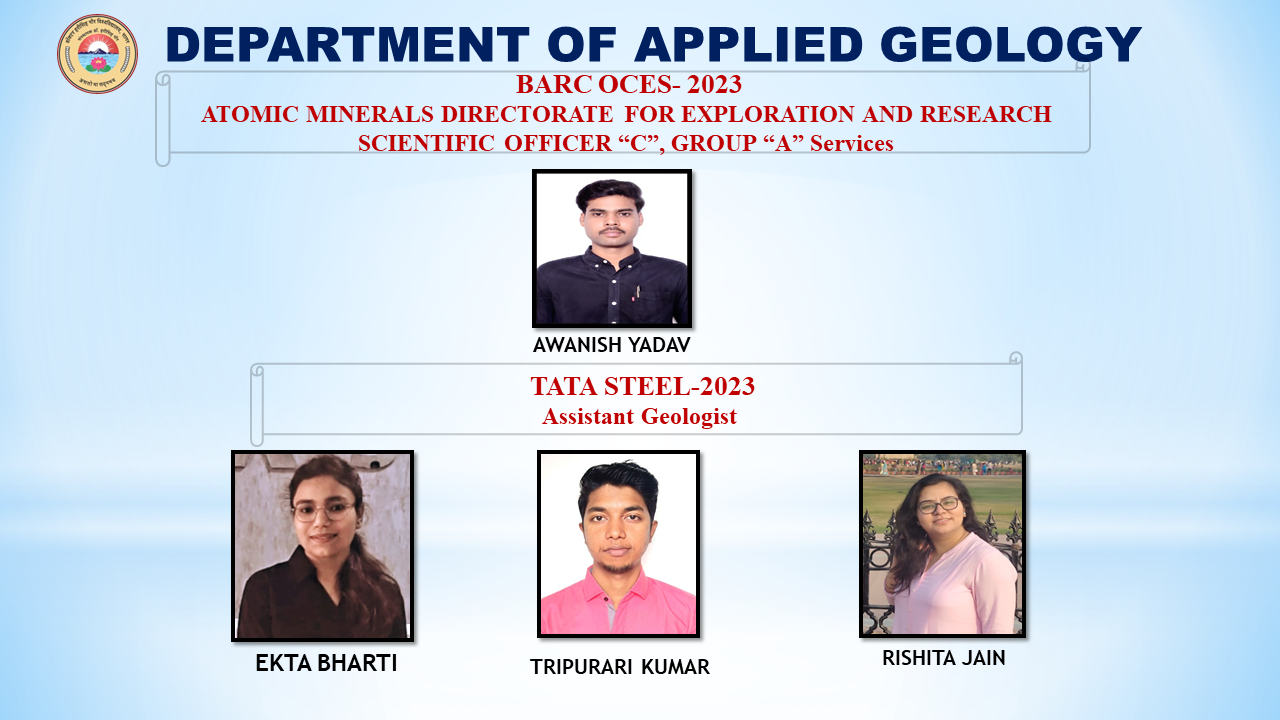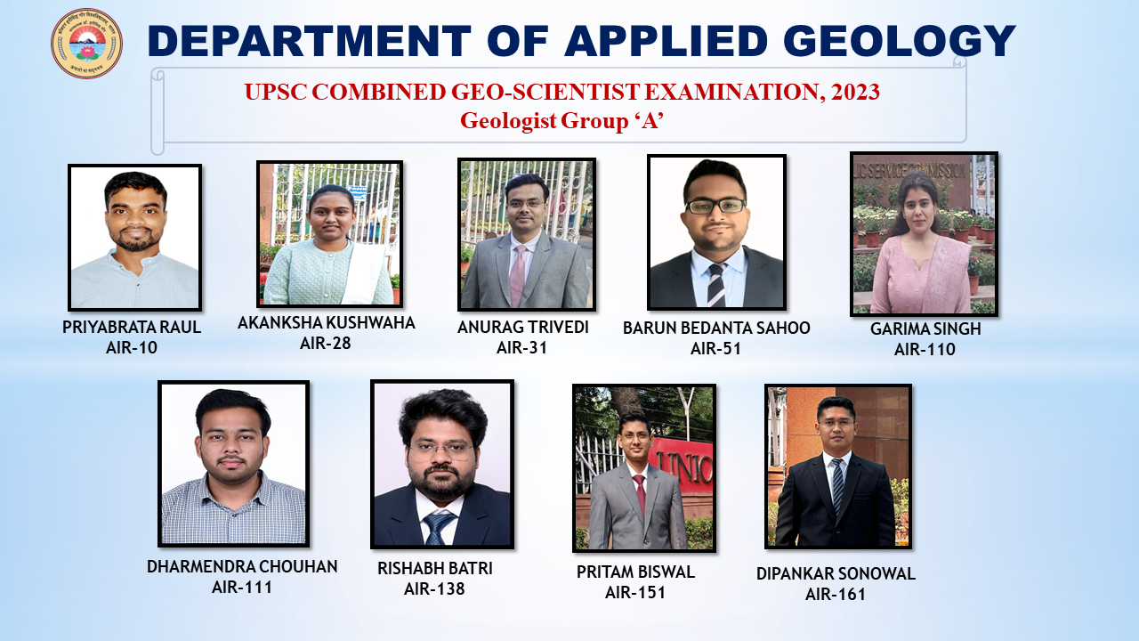 Department have a good track record for placement. Specially in GSI and Central Ground Water Board (Group A Services) conducted by UPSC New Delhi every year.