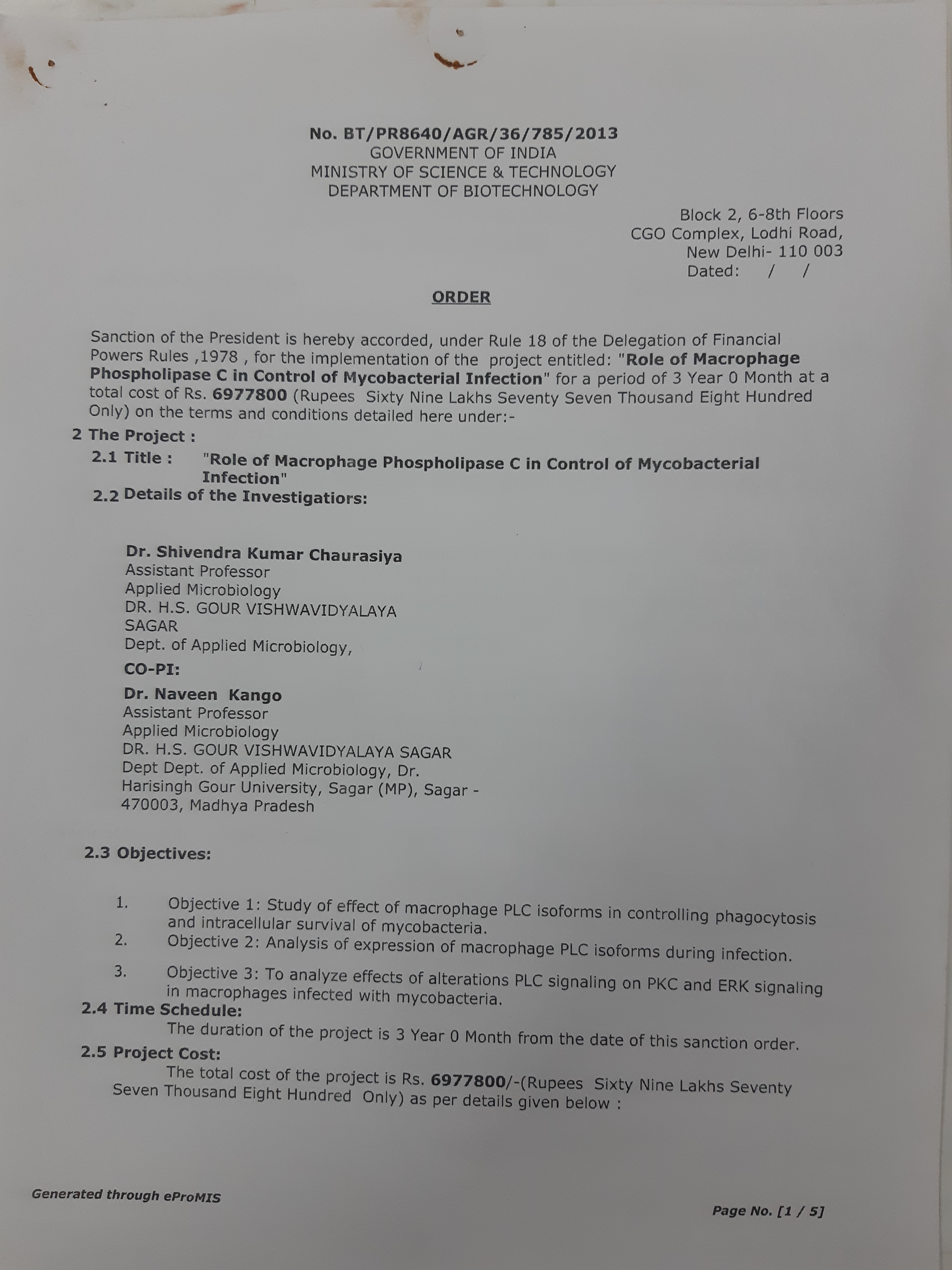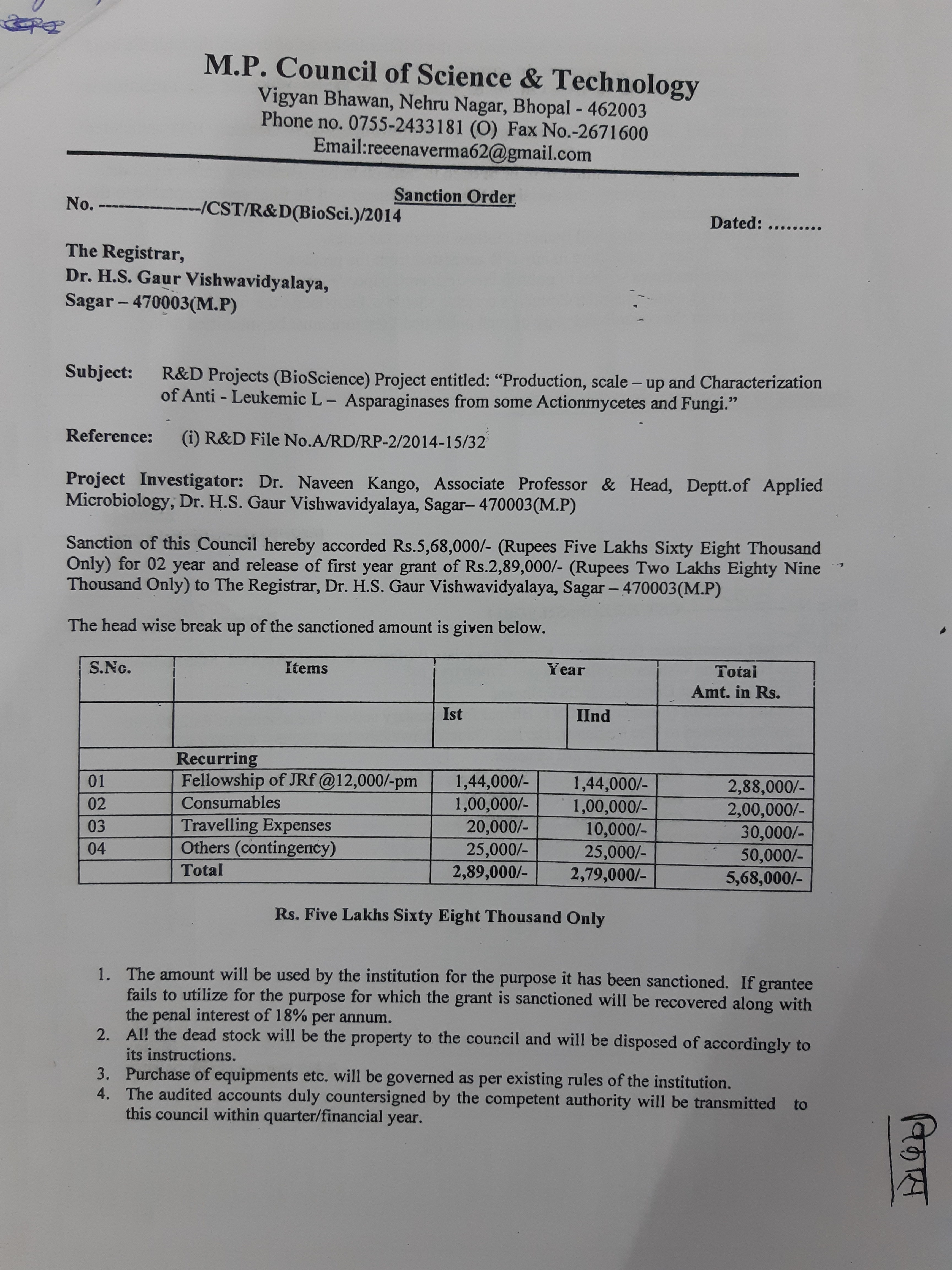 The pioneering work done in the Microbiology and Mycology laboratory of Botany department triggered a vision of initiating a full-fledged curriculum in Applied Microbiology and Biotechnology at Dr. Harisingh Gour University. The idea was conceived by the founder head, Prof. S. C. Agrawal (Head: 1996-2004) resulted in the start of much awaited P. G. course in Life Sciences faculty in 1990-91.