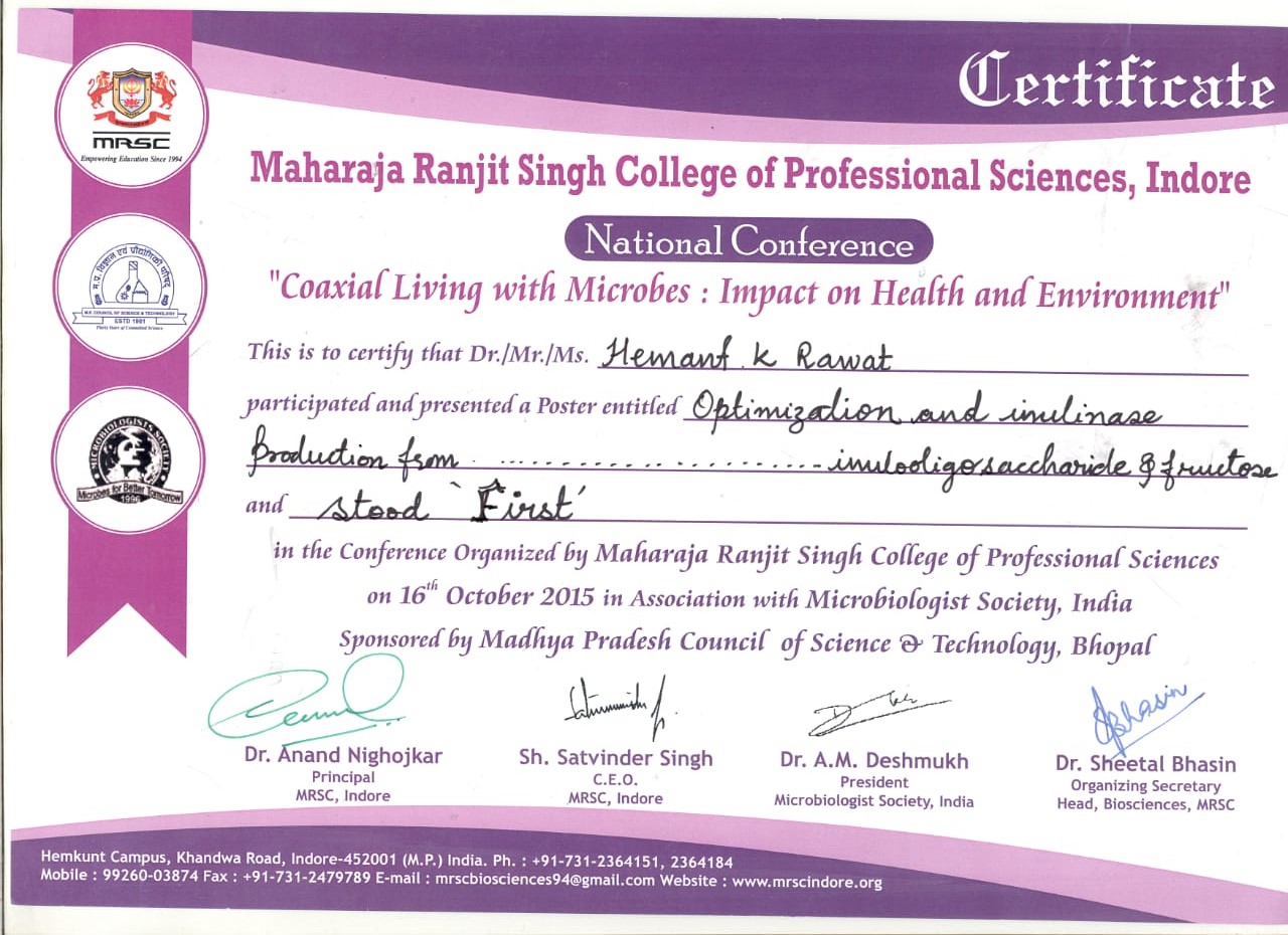 Orcid ID: https://orcid.org/0000-0003-2138-769X Research gate: https://www.researchgate.net/scientific-contributions/Hemant-Kumar-Rawat-2082371822 |