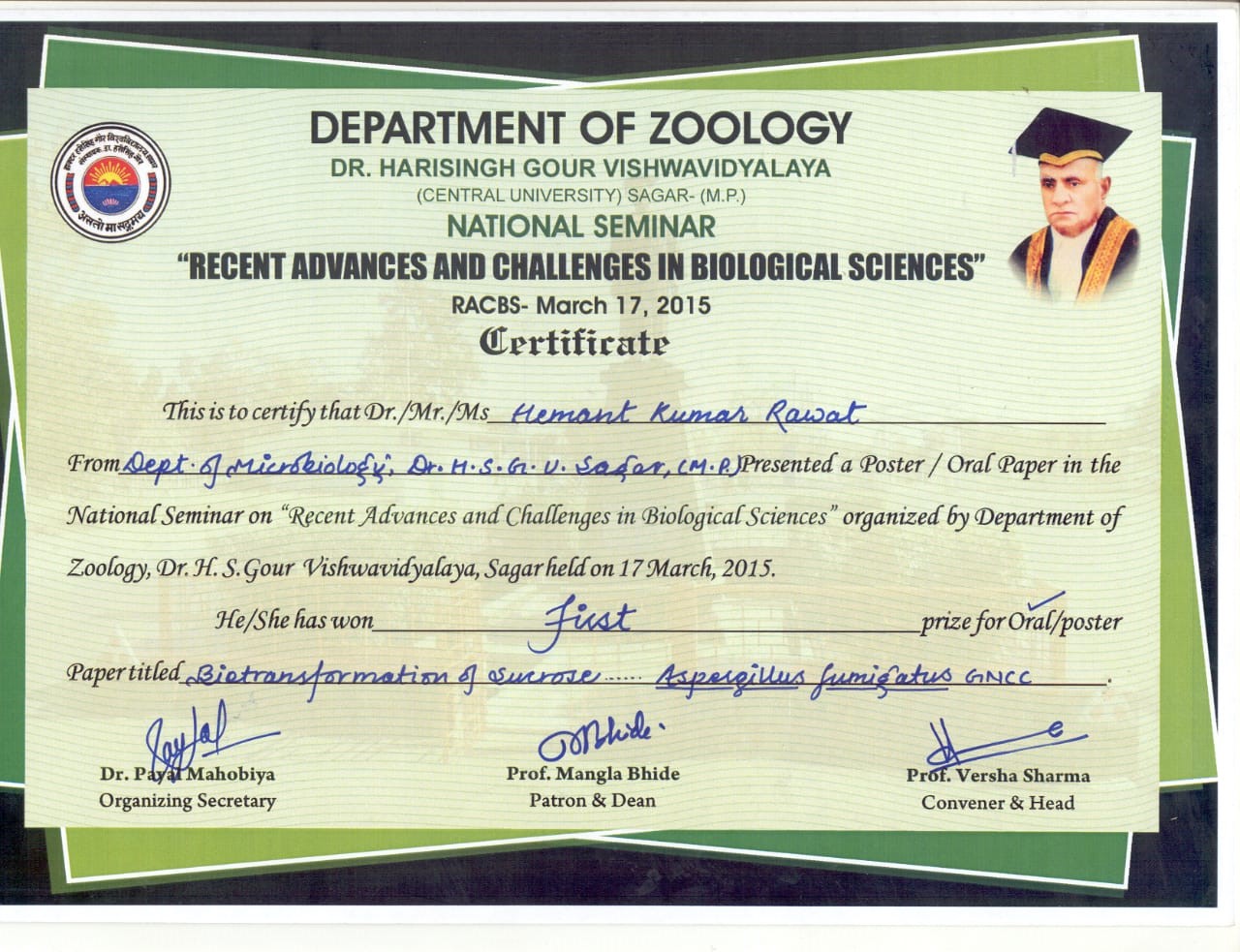 Dr Harisingh Gour Vishwavidyalaya Sagar, MP Email Id: This email address is being protected from spambots. You need JavaScript enabled to view it. Mobile No: 9893375298 |