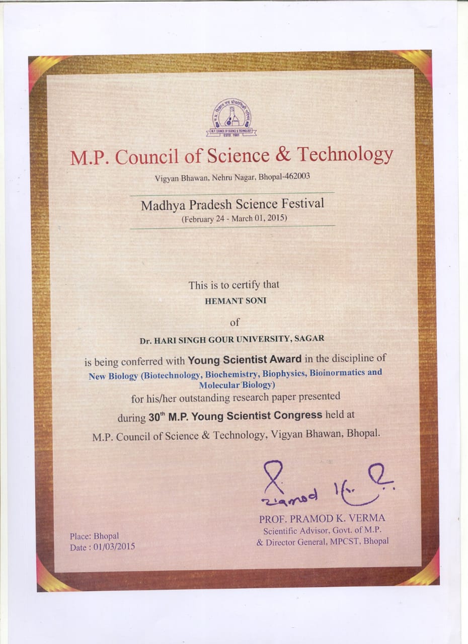 Net-JRF (CSIR), CDRI, Lucknow, 1996. Ph.D. (2004) Dr. H.S. Gour University, Sagar Assistant Professor, Dr. HS Gour University, Sagar, India, 1997-2008. NRF Post Doctoral Fellow, Durban University of Technology, South Africa, 2004-05. UGC-CIMO Fellow, Helsinki University, Finland, 2008-09. Reader, Dr. HS Gour University, Sagar, India, 2008-11. Associate Professor, Dr. HS Gour University, Sagar, India, 2011-2014 Professor, Dr. HS Gour University, Sagar, India, 2014-2021 |