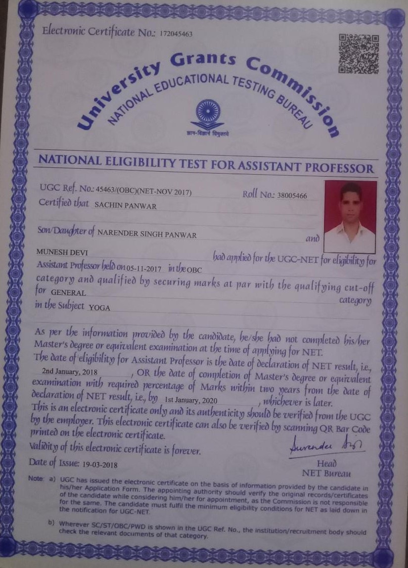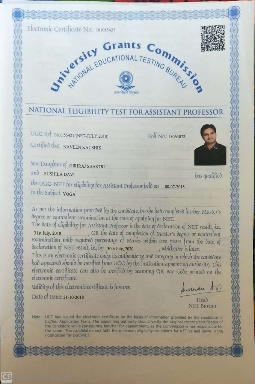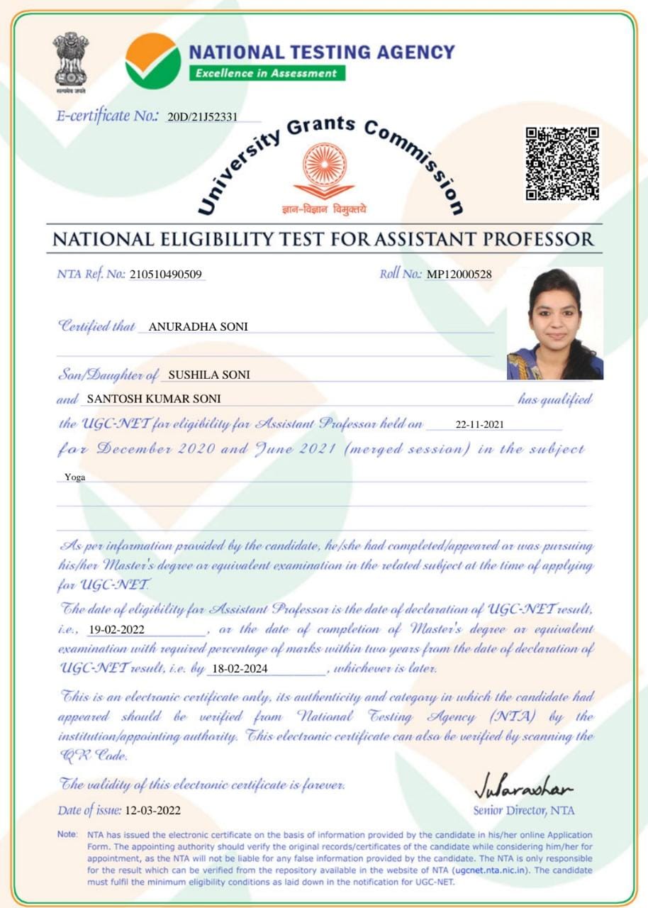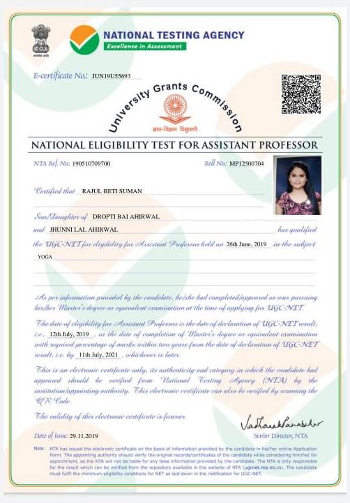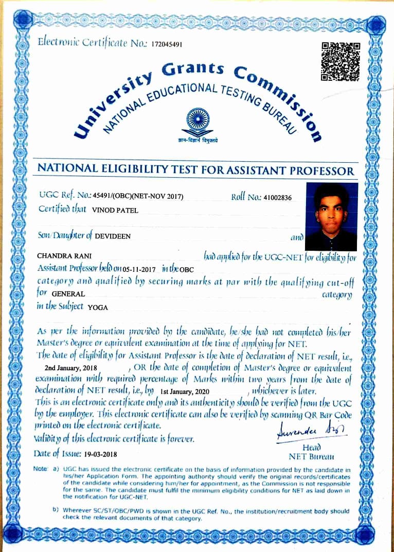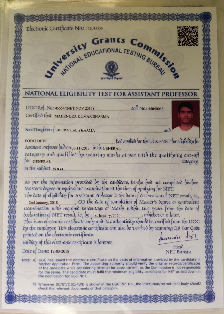 Retired as Reader in Yoga