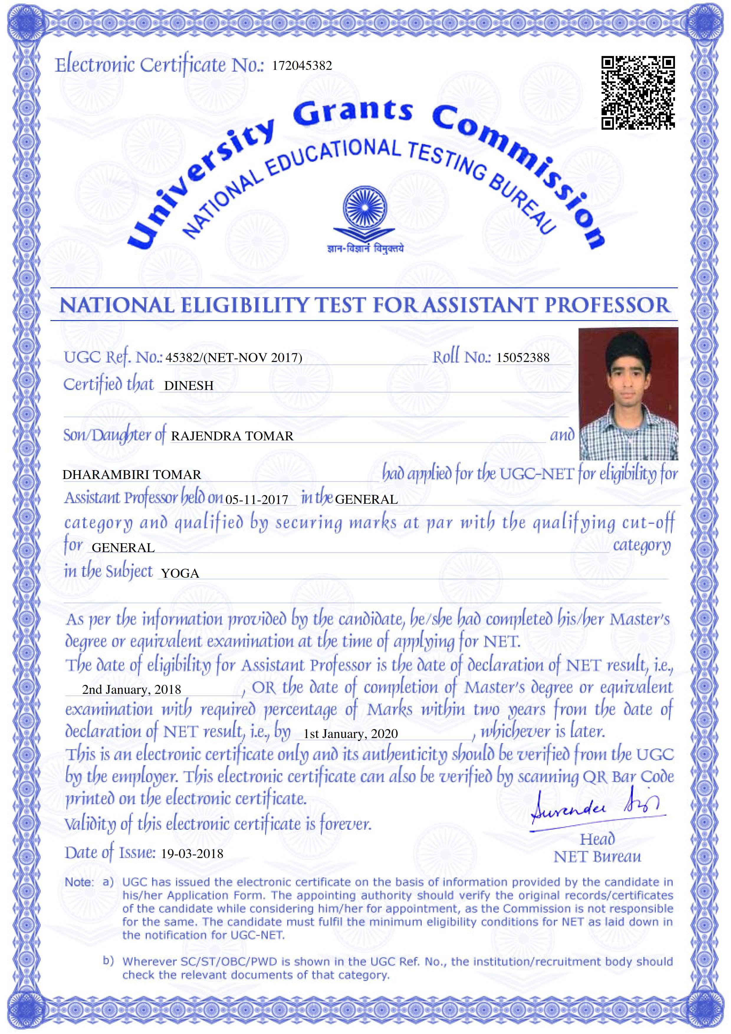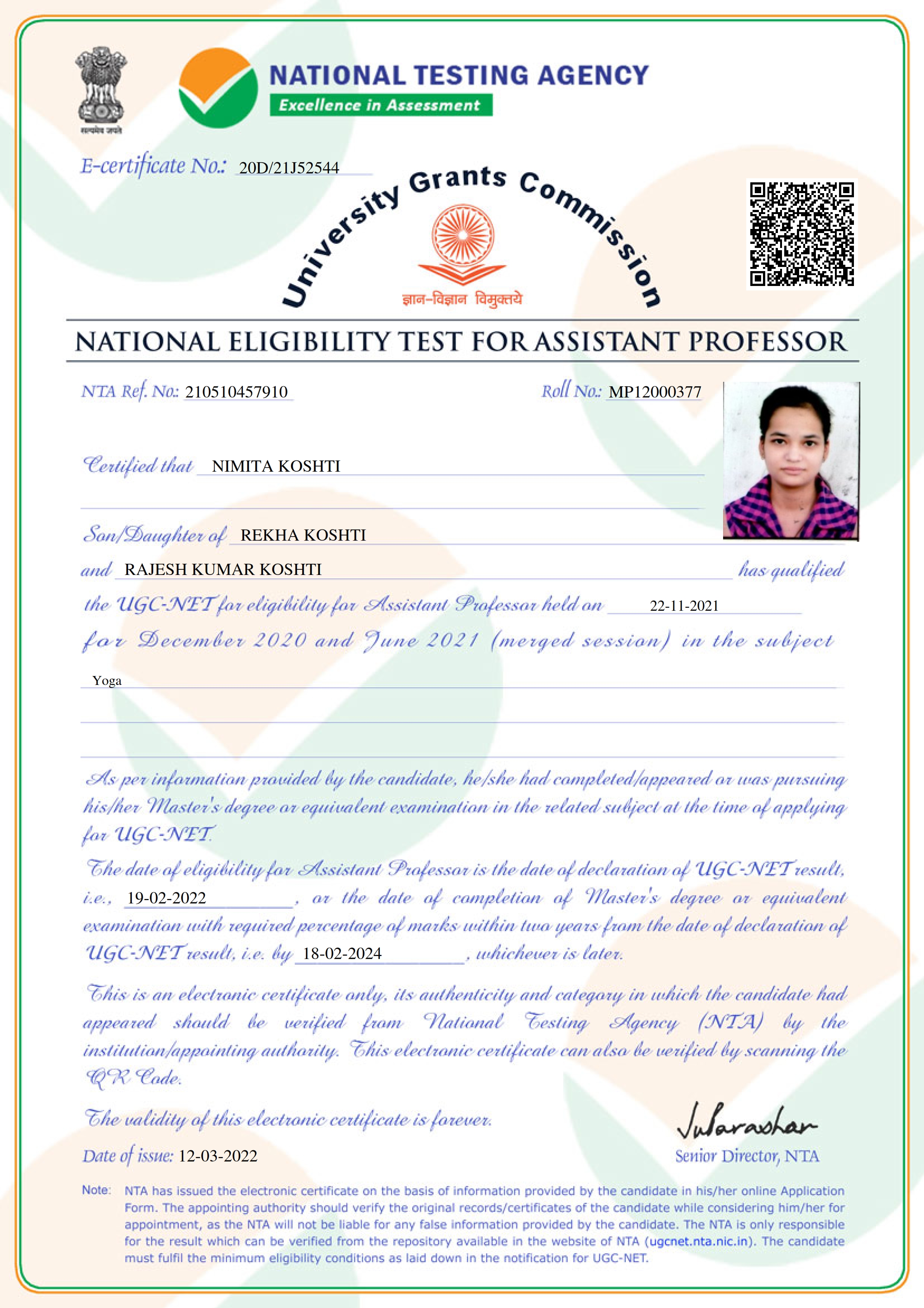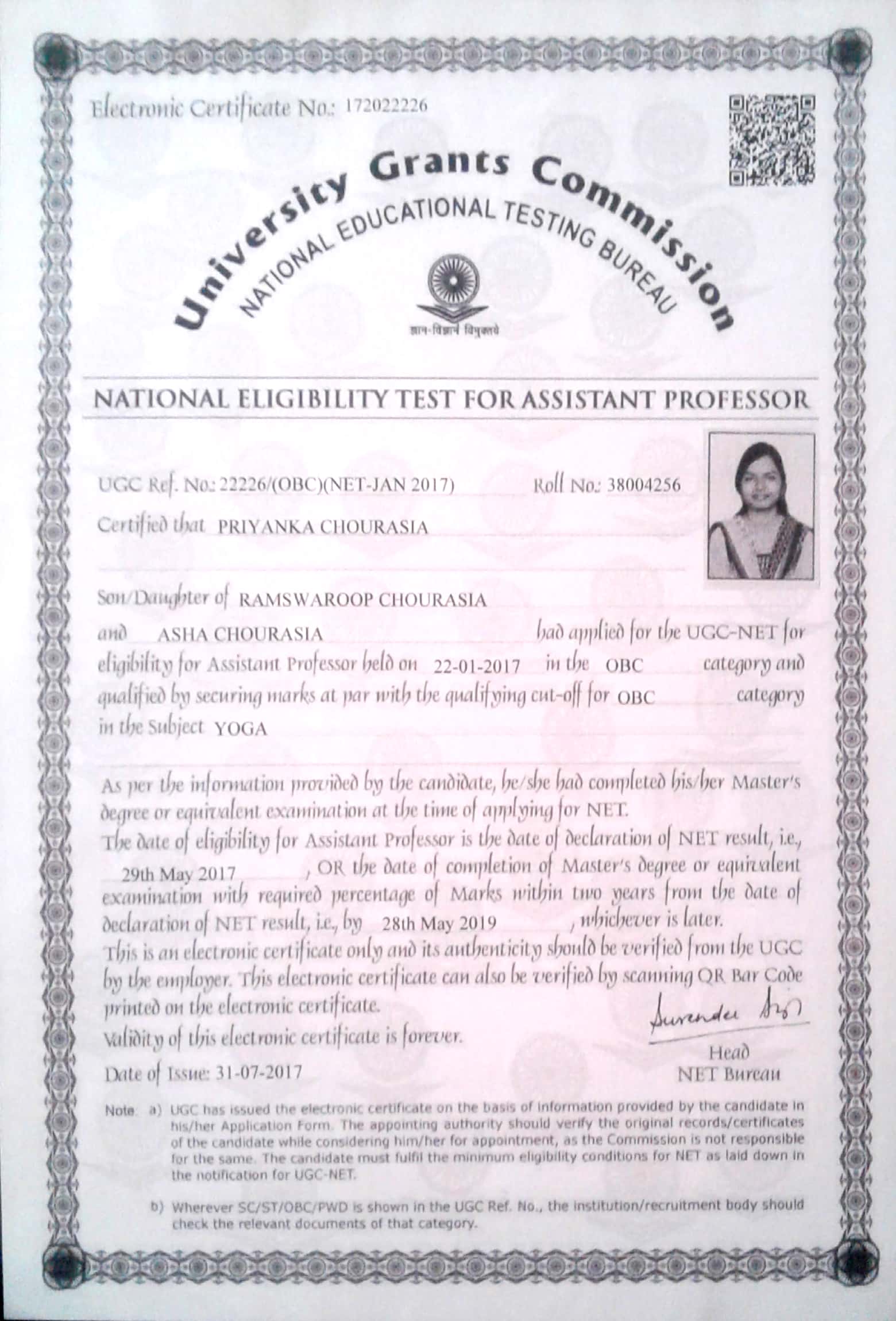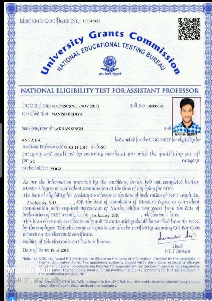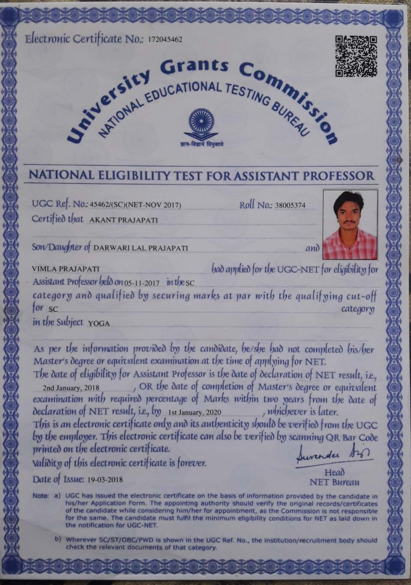 Retired as Reader in Yoga