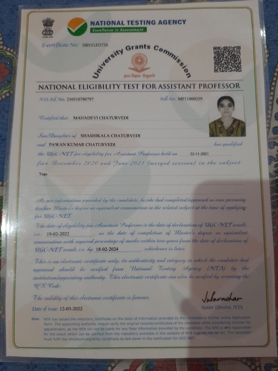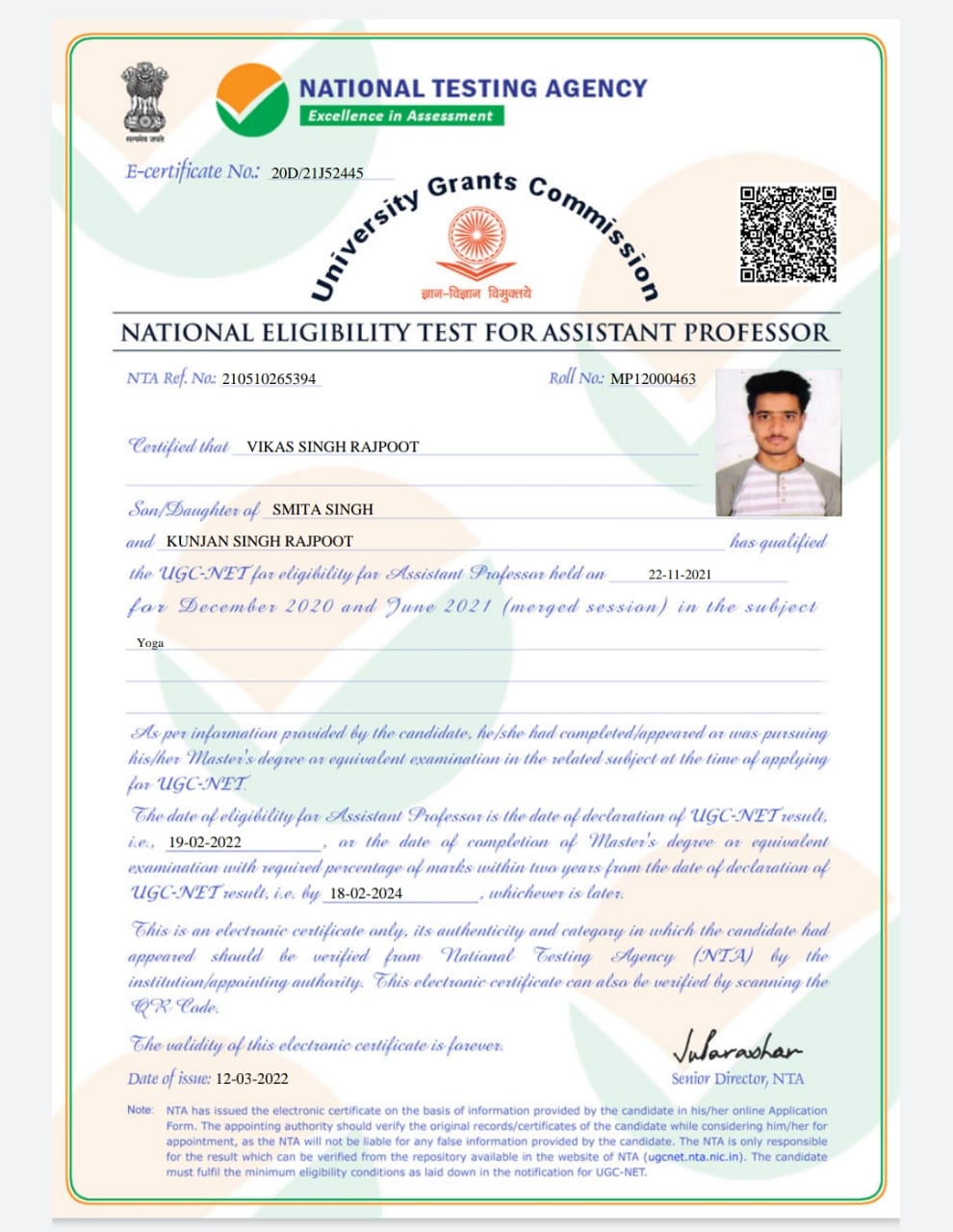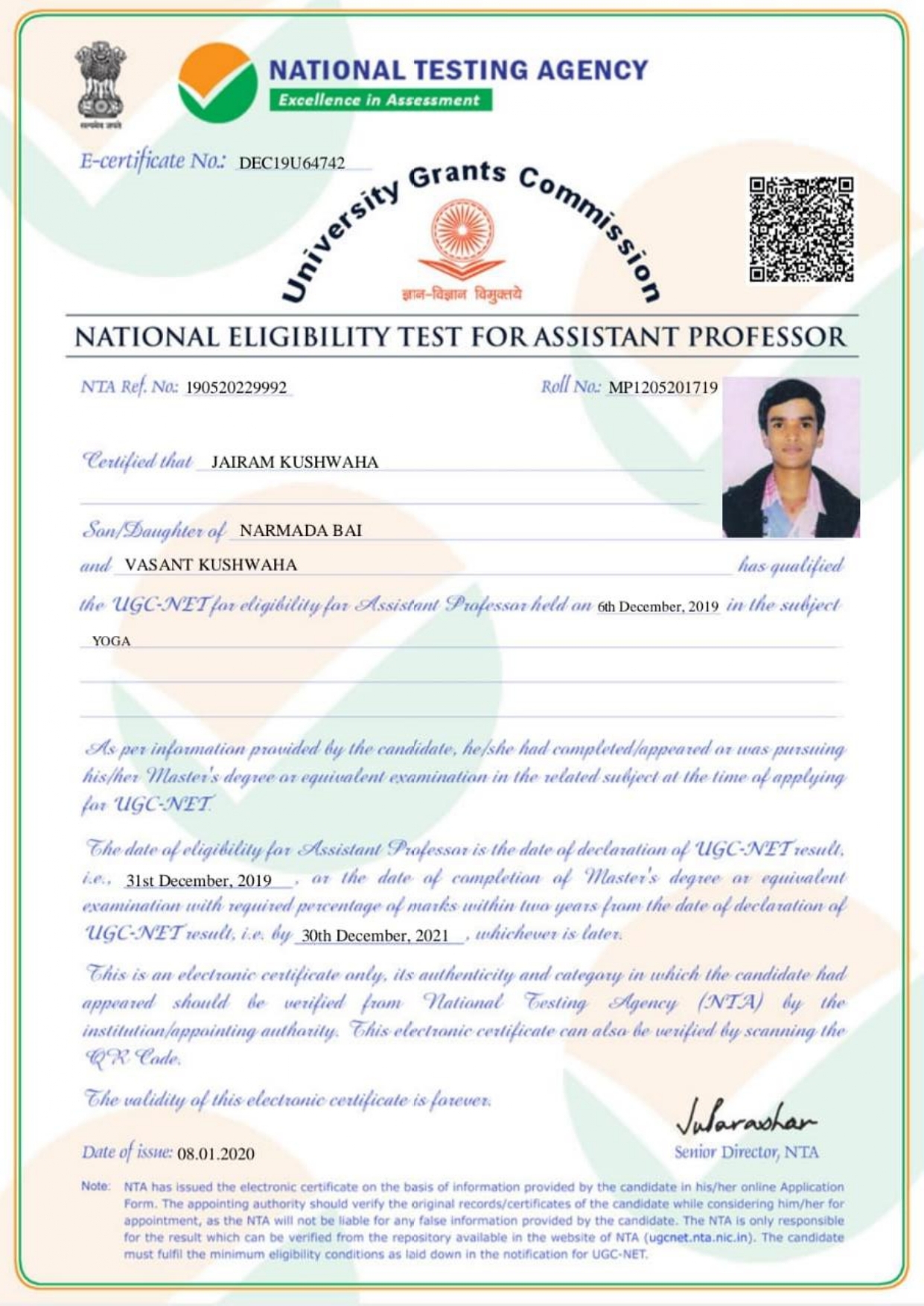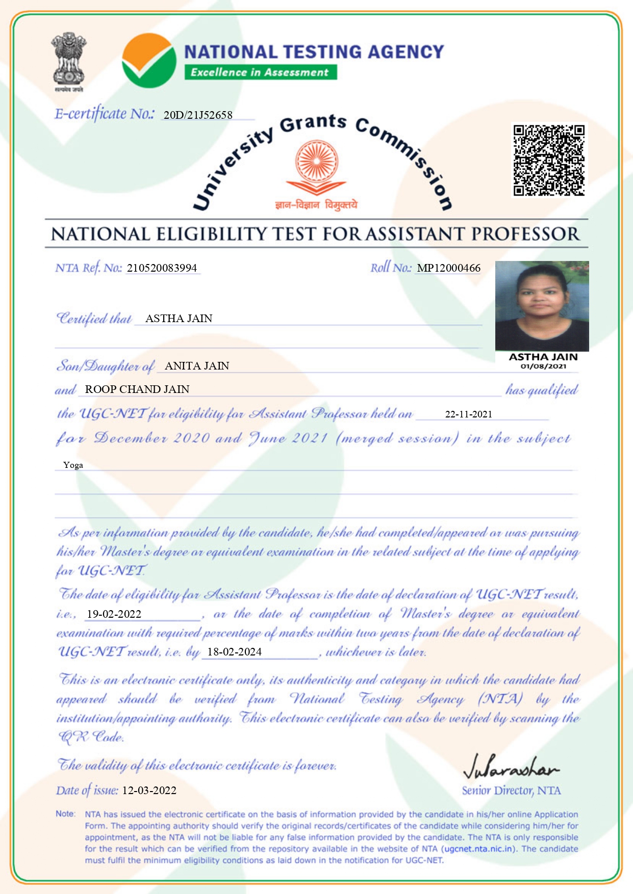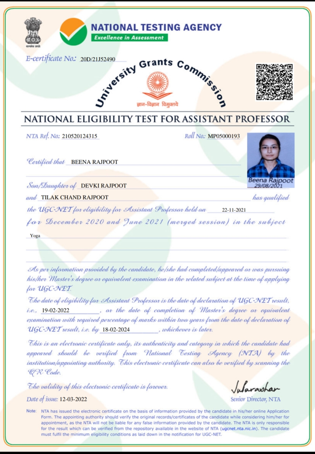 Retired as Reader in Yoga