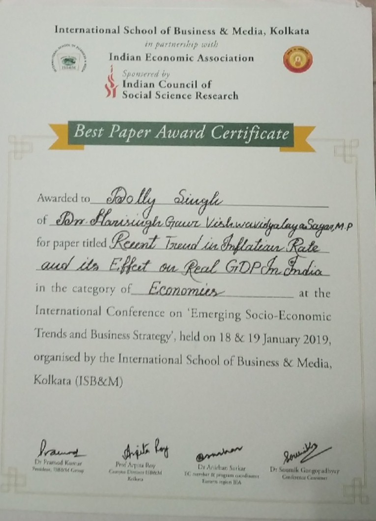 Apparently, the students of the department of Economics have also bagged great achievements in the field of civil services, higher education and have established themselves in the sphere of Academia. The faculties are also acting as external Subject Experts in Board of studies / RDC Experts of different universities. The faculties of the department are actively involved in conducting the courses and National & International Seminars and Faculty Development Program like Refresher Course and Short Term Course through HRDC.