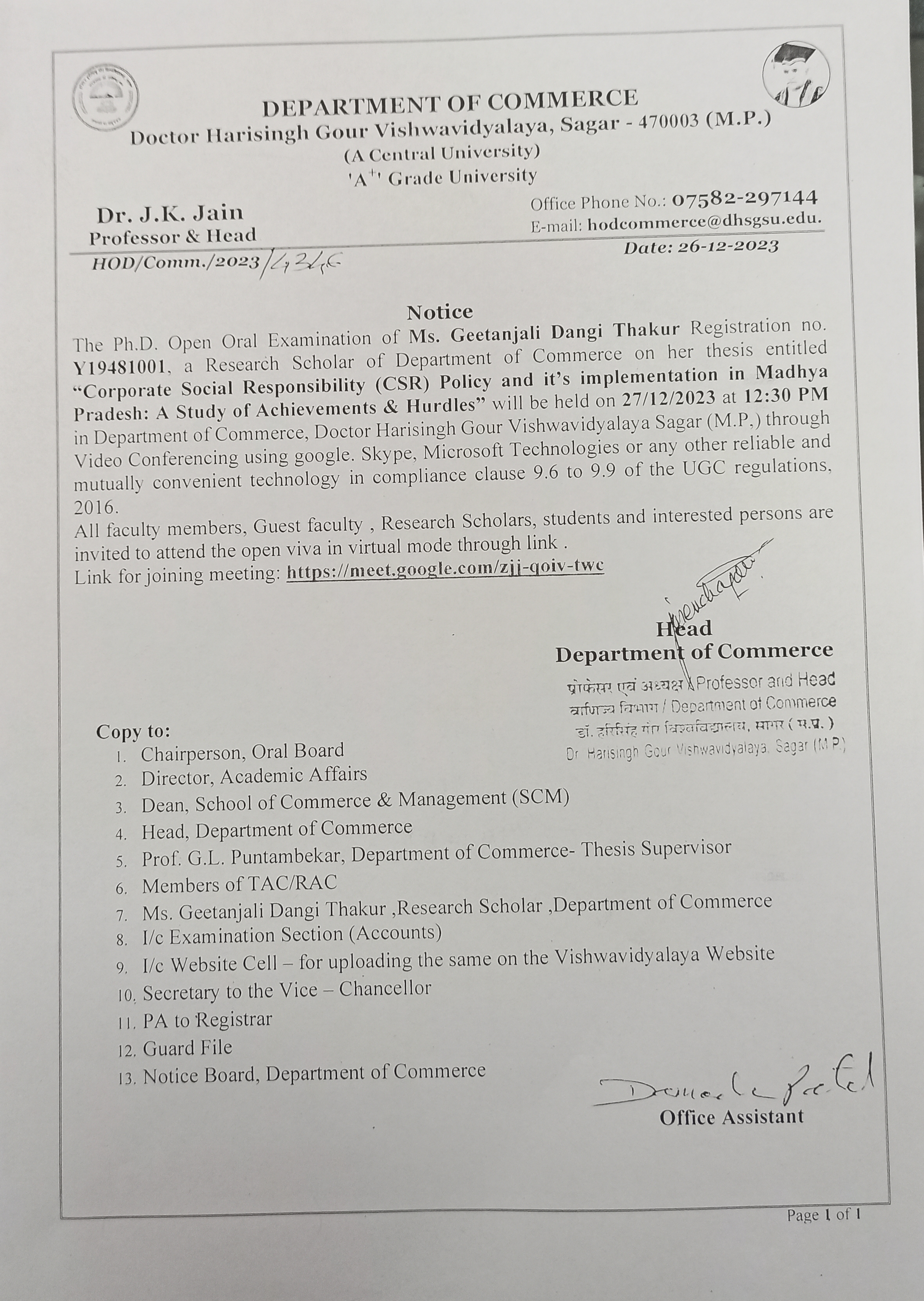 | Ph.D. Oral Examination of Ms. Geetanjali Dangi Thakur-26-12-2023 | DOWNLOAD |
