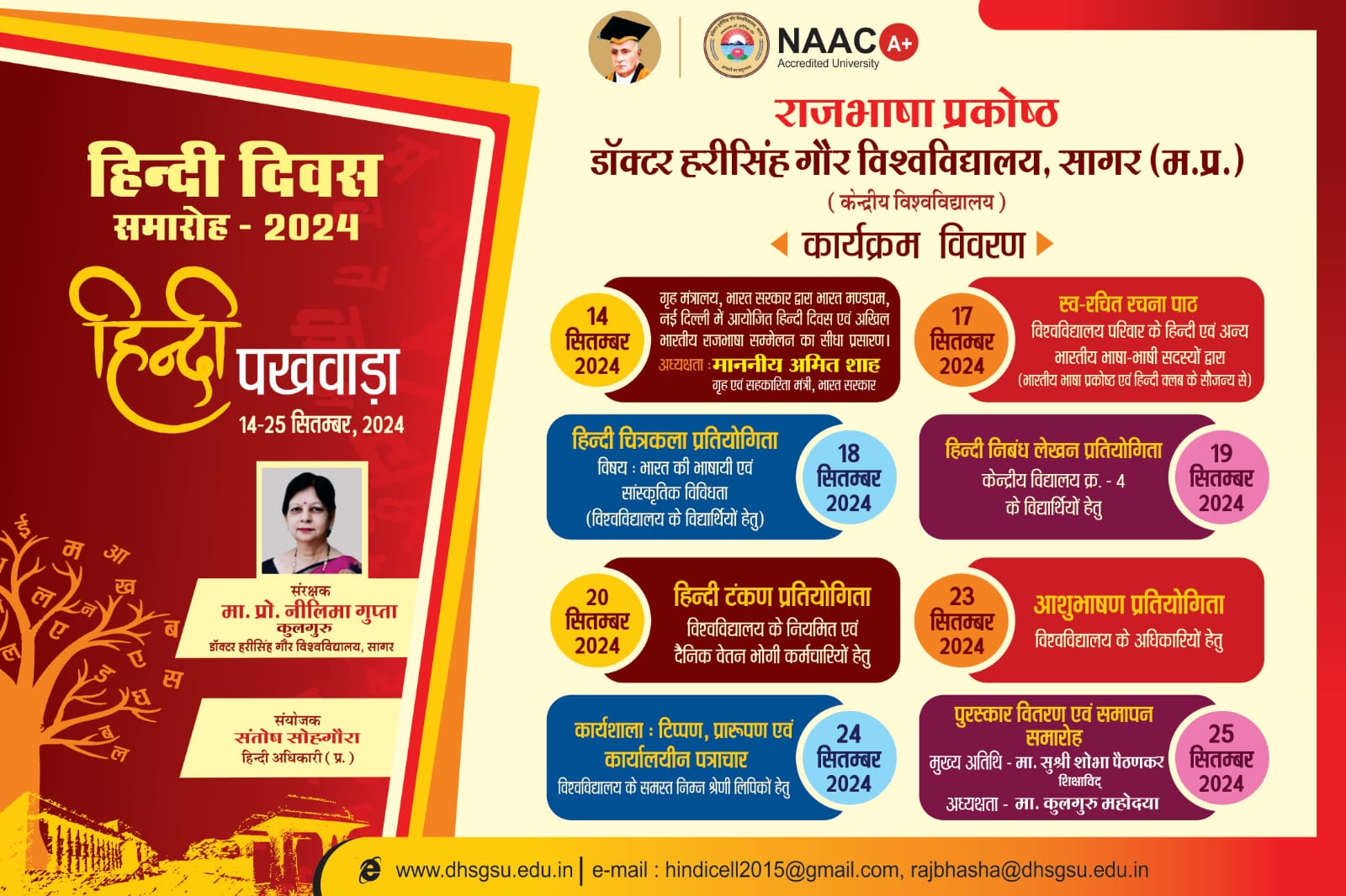 - हिन्दी पखवाड़ा-2024 (14 सितम्बर, 2024 से 25 सितम्बर, 2024 तक) “Hindi Cell” (DispNo. --/, Dt.13-09-2024) पूर्ण जानकारी हेतु संलग्नक देखे