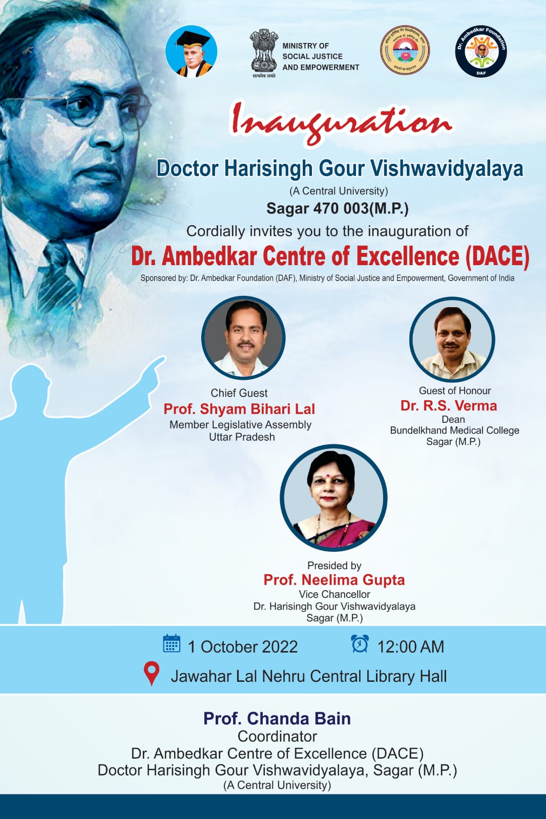 Inauguration of Dr. Ambedkar Centre of Excellence (Dr. Ambedkar Centre of Excellence) -“DACE” -(DispNo.DACE/2022/54, Dt.30-09-22) पूर्ण जानकारी हेतु संलग्नक देखे