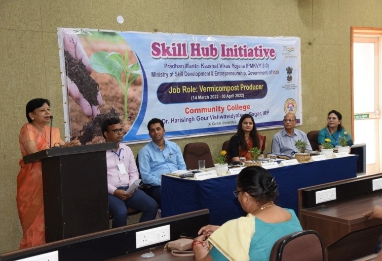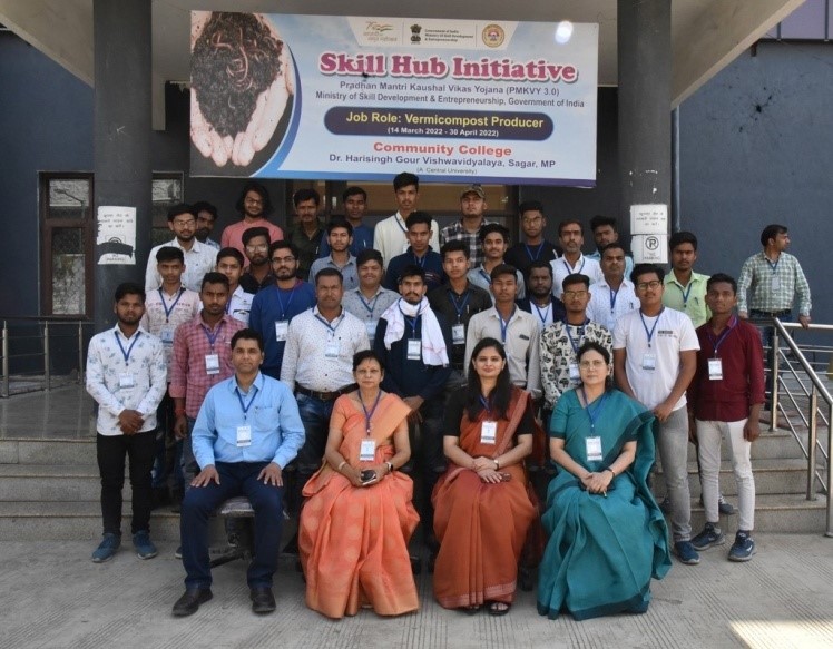 Dr Harisingh Gour Vishwavidyalaya (A Central University), Sagar, has launched a programme for the job role Vermicompost Producer on March 14, 2022 to develop skills in people under the age of 45 who are either school dropouts or dropped out from the educational system. Thirty-six students have been registered for the course, but two of them were unable to continue because their Aadhaar card numbers had already been registered for other courses on the Skill Hub Initiative website, and one student had an issue with their Aadhaar card, which was reported as an error 6 (locked Aadhaar card). As a result, there were thirty-three students in the class at the launching of the course. As most of the students were from rural areas and had little knowledge of computers, the uploading of records was handled by Training Provider and Nodal Officer Prof Shweta Yadav with the assistance of community college staff. The participants were taught several elements of vermicomposting in the form of theoretical and practical sessions over the period of 45 days. students were also taught fundamentals of entrepreneurship, accounting, management, and hygiene management. Aside from that, the students were taken to several field places to connect with various vermi-entrepreneurs. From March 14 to April 30, 2022, a total of 33 faculty members and research experts, including internal (18) and external (15), were involved to teach theory and practical sessions. During the training, the students visited 7 different fields to have hands on experience of the technology. The exam was held on 30 May 2022 at Dr. Harisingh Gour Vishwadyalaya in Sagar by the Agricultural Council of India. |