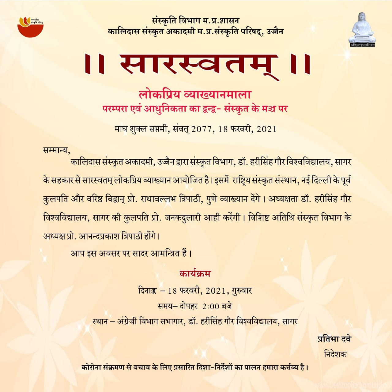 | 2022 | 26/02/2022 | सारस्वत व्याख्यानमाला | Click |