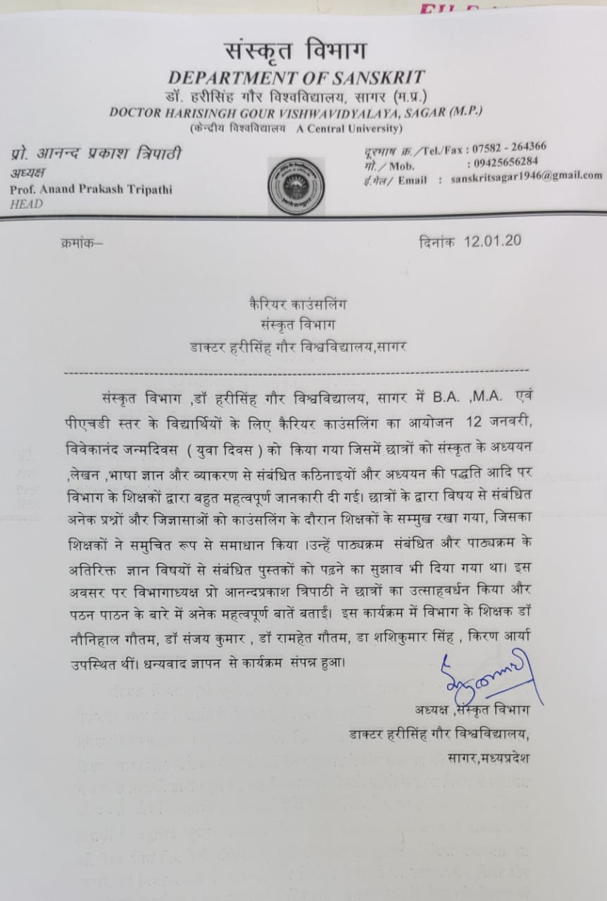 | Certificate Course (संस्कृत संभाषण) | 01.01.2018 | 48 | NIL | Click |