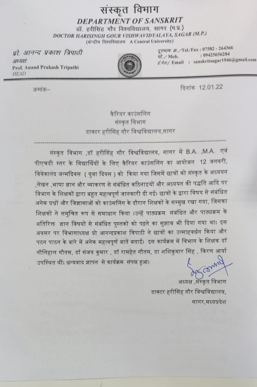 | Certificate Course (संस्कृत संभाषण) | 21.01.2019 | 05 | NIL | Click |