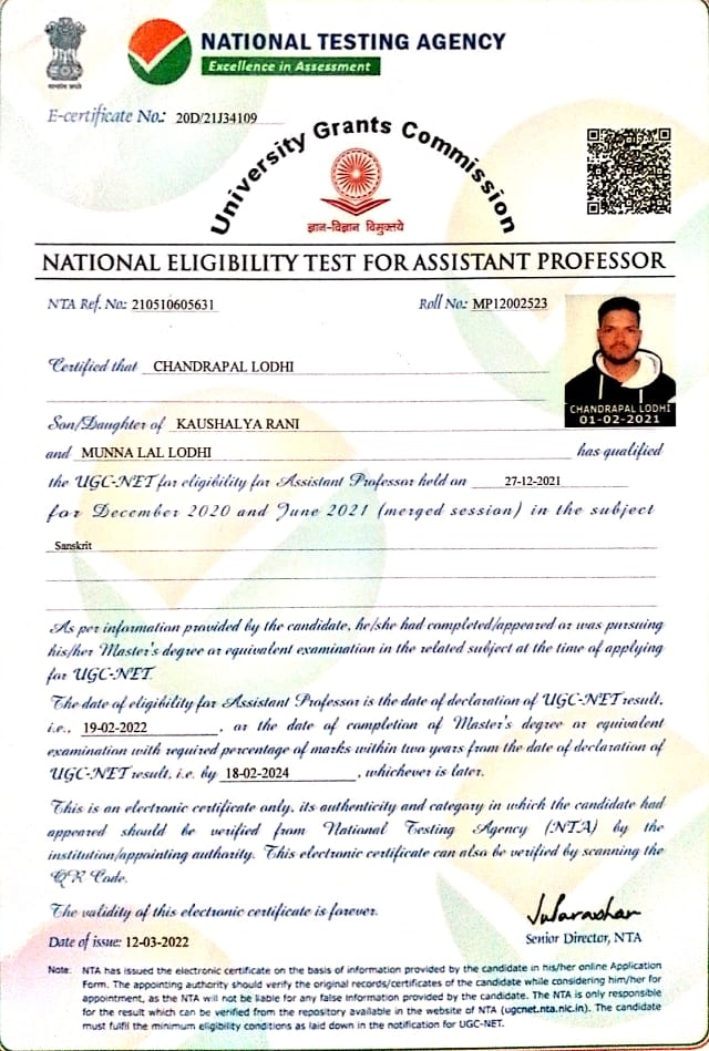 | 2021 | MP12000962 | Akash Dubey | UGC-NET | Click | |||||||||||