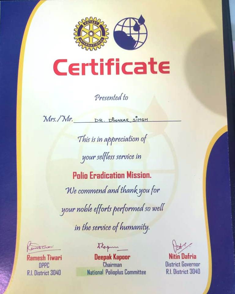 | Prof. Diwakar Singh Rajput | Polio Eradication Mission DPPC R.I. District 3040 | 07-03-2020 | Download |