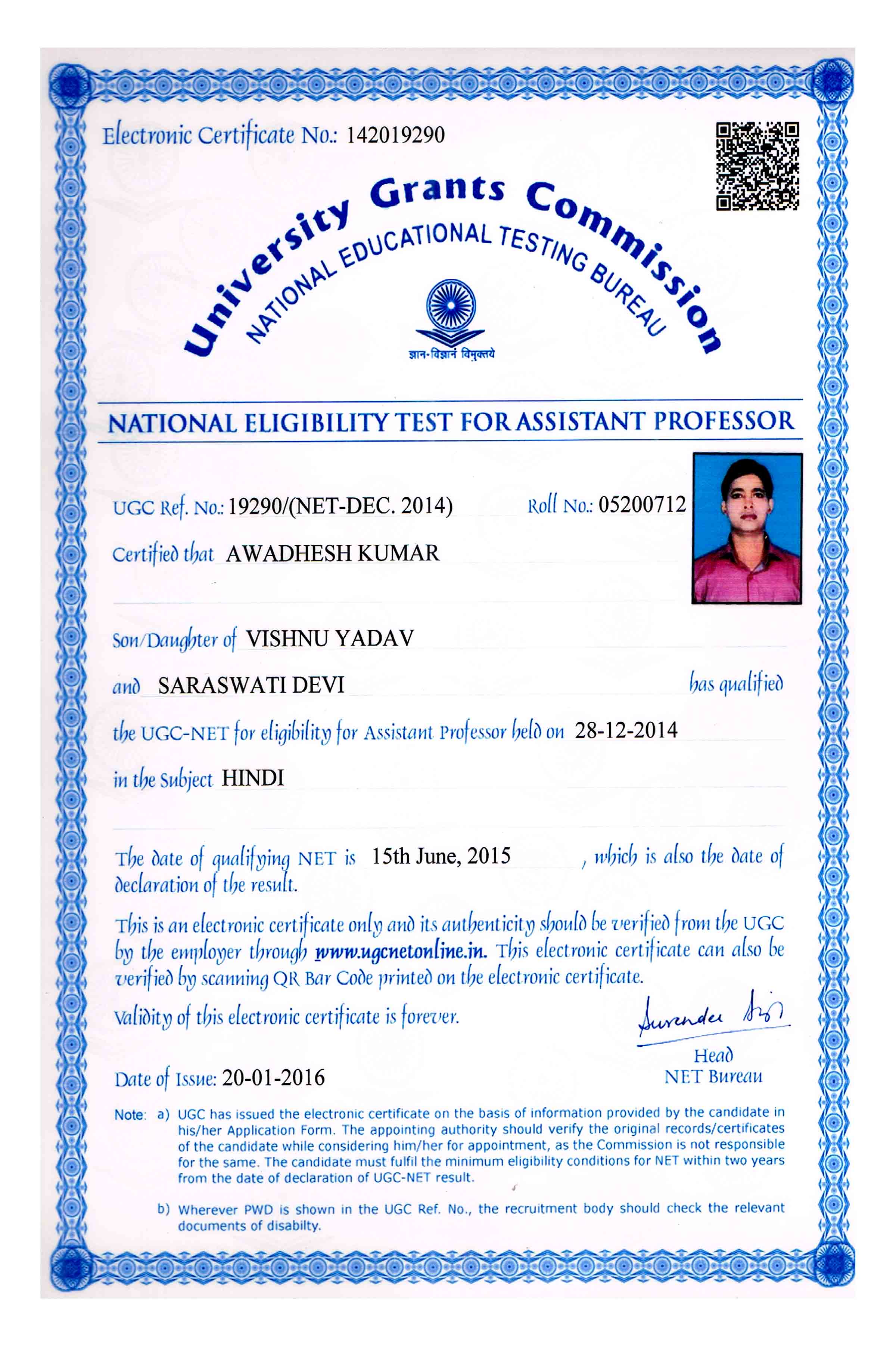 | 2016 | MP1201590002 | Jugul Kishor Chaudhary | NET | Link |