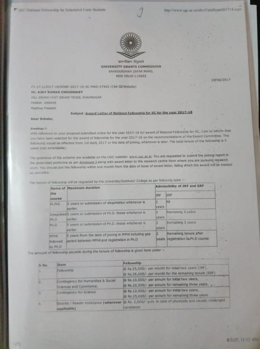 | 9 | Ajay Chaudhari | 2015 | 2016-2021 | JRF/RGNF | UGC | NET | Link |