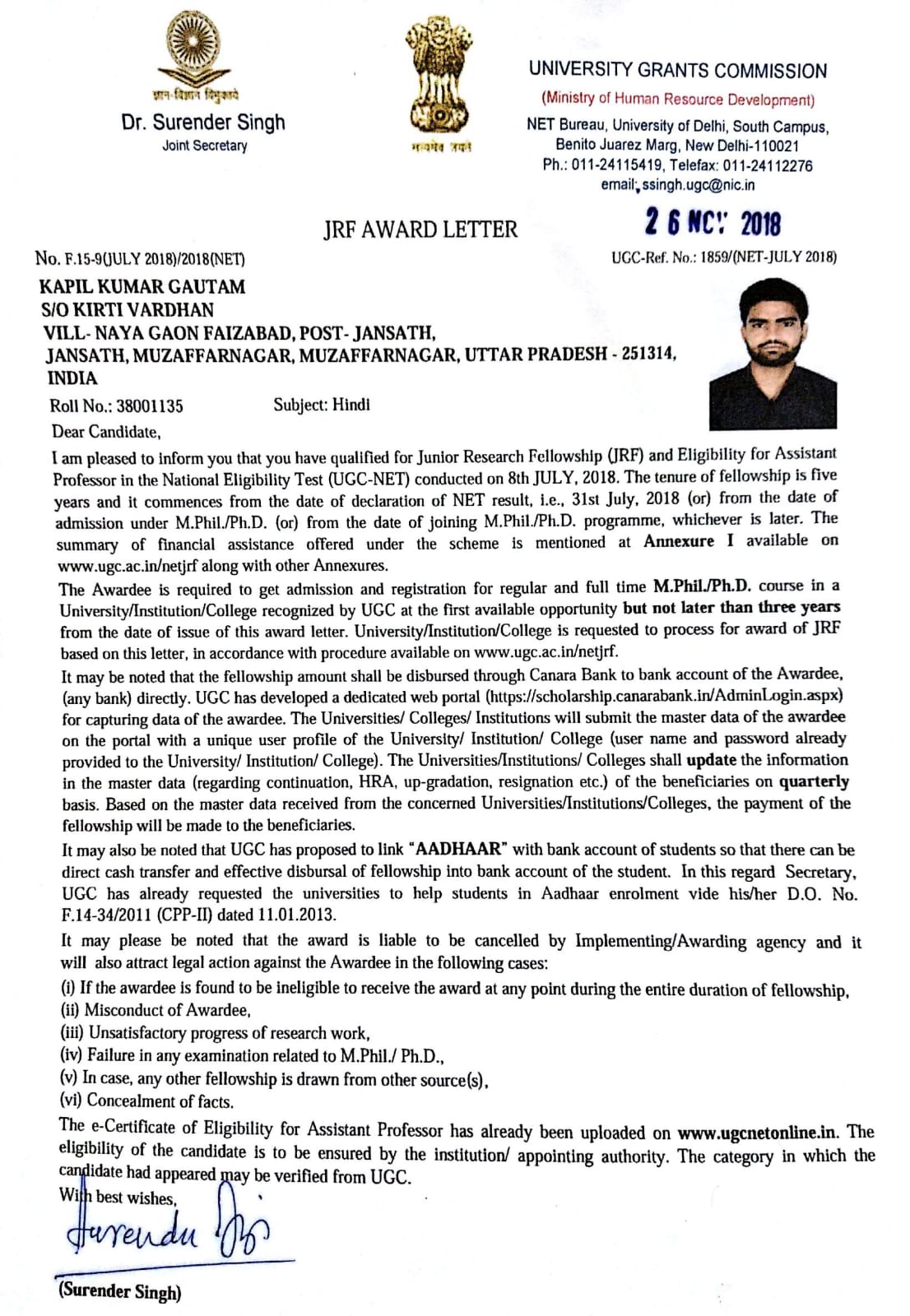| 2018 | 38001135 | Kapil Kumar Gautam | NET | Link |