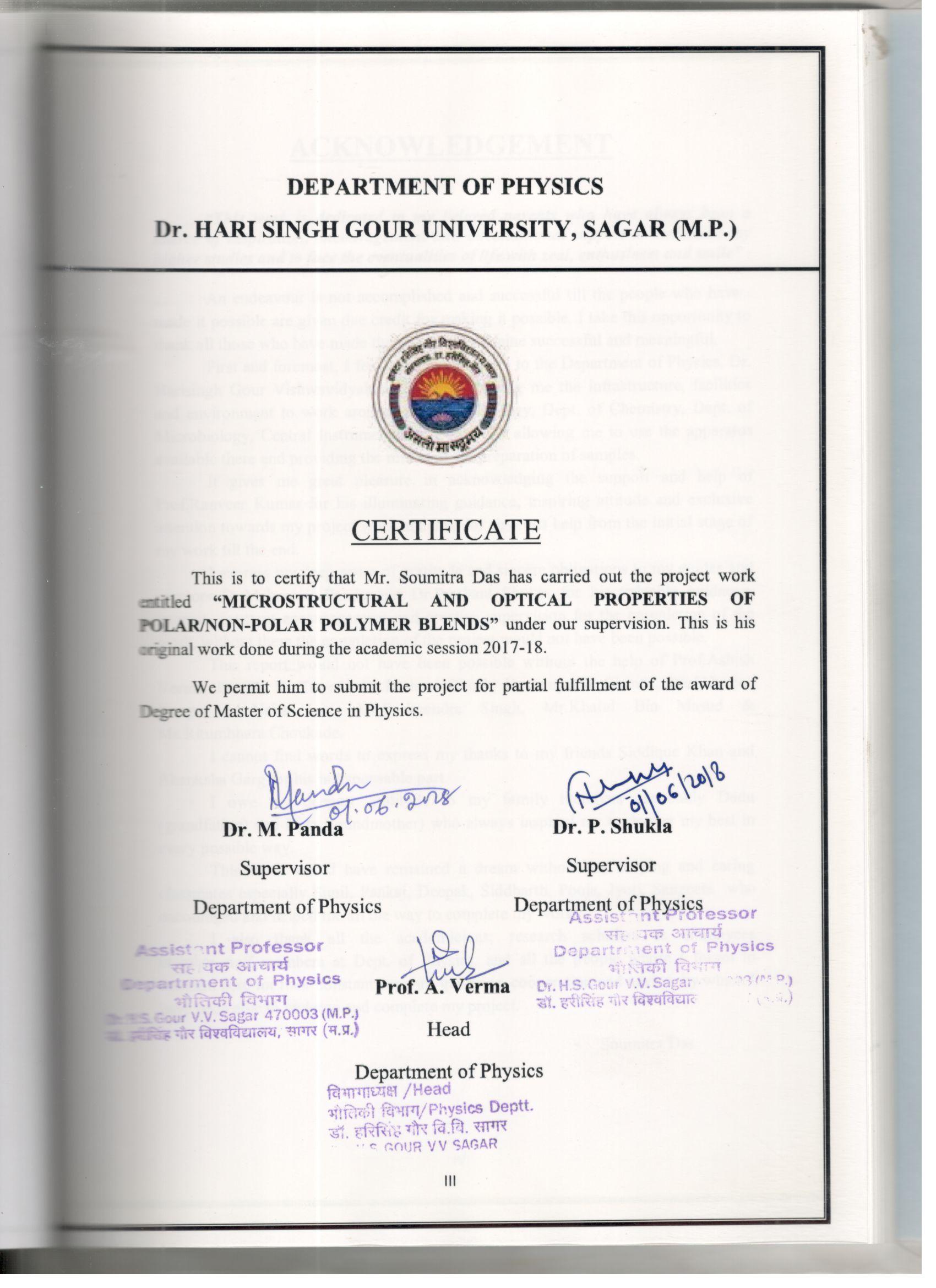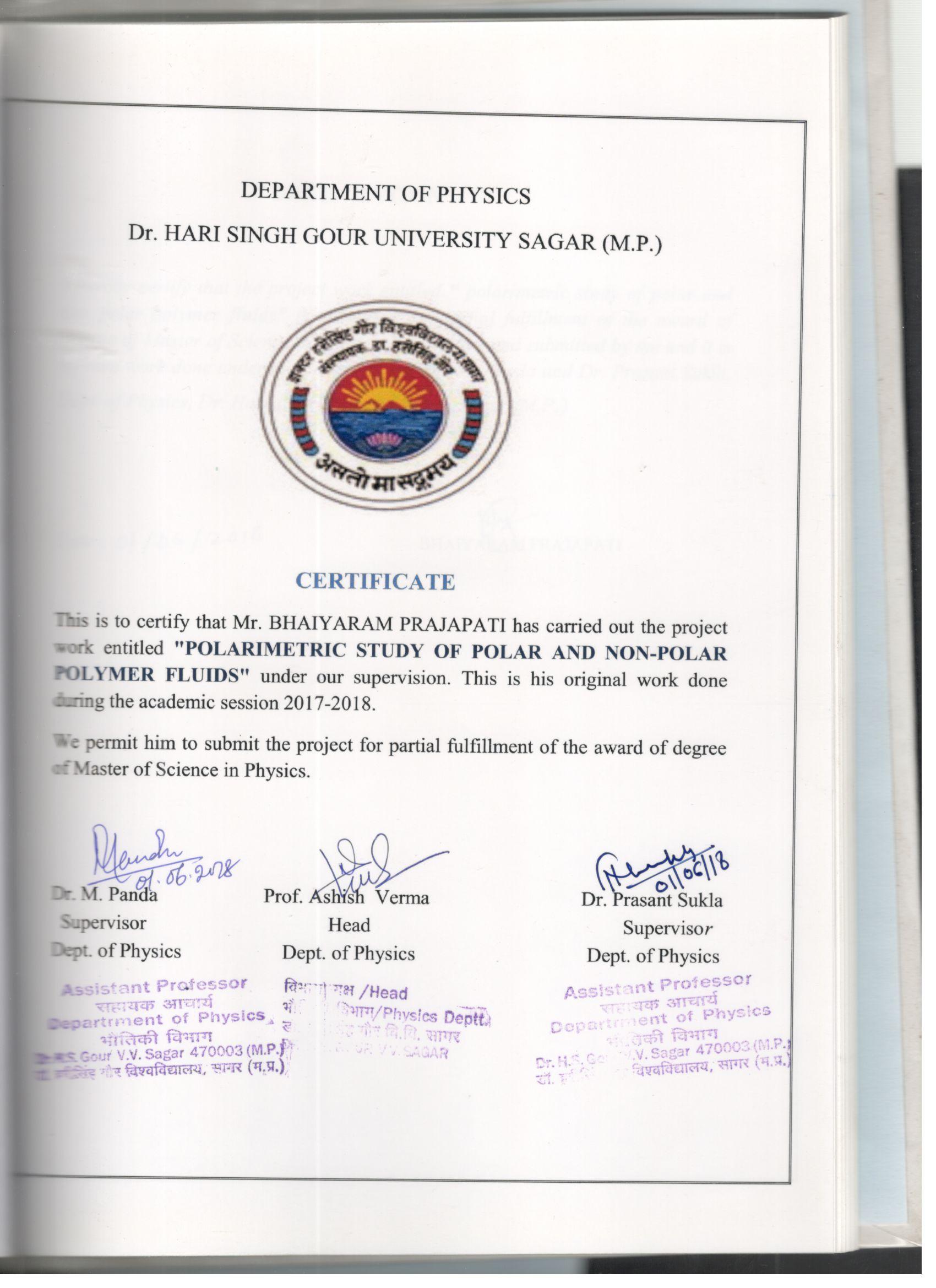 | Y16473004 | Shwetambar Patel | Dr. Harisingh Gour University, Sagar | Ph.D. |