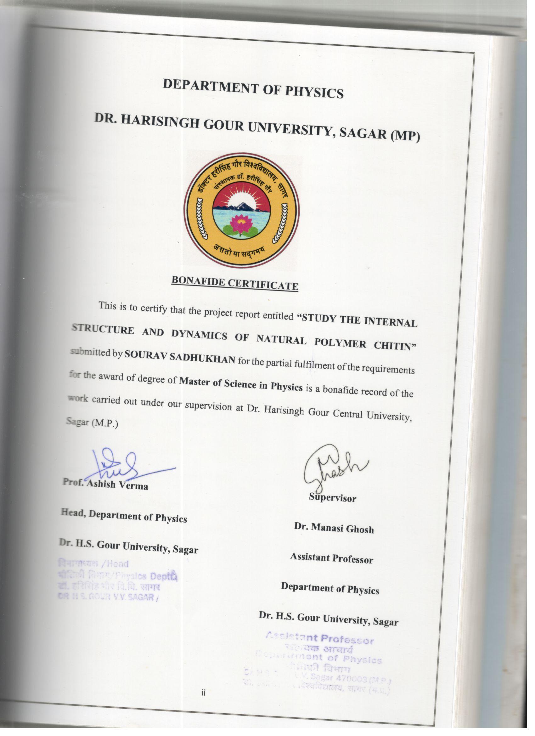 | Y19473010 | Shadab Anwar Khan | Dr. Harisingh Gour University, Sagar | Ph.D. |