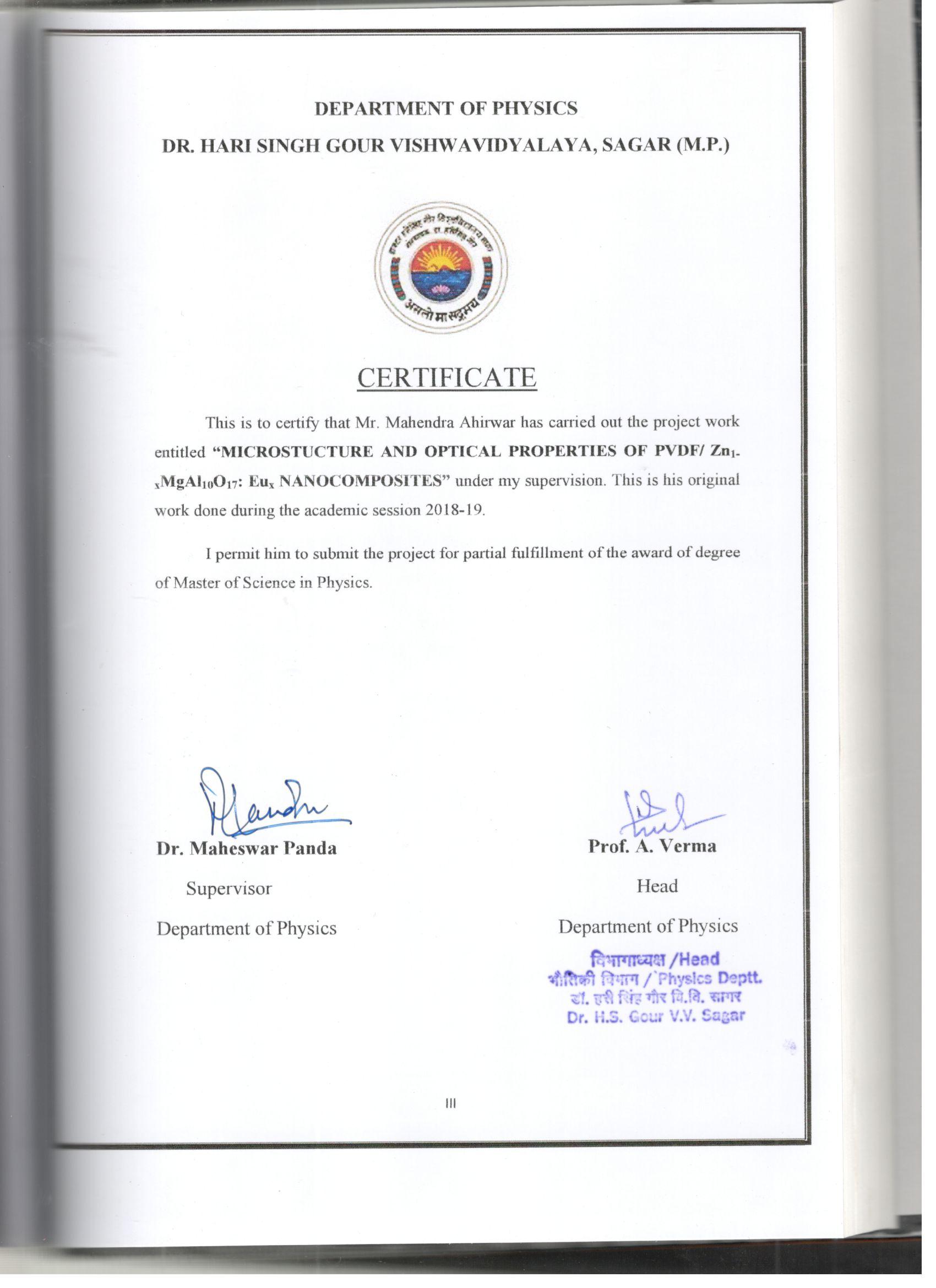 | M.Sc. (Physics) | 2200 | Abhijeet Pachouri | VIEW |
