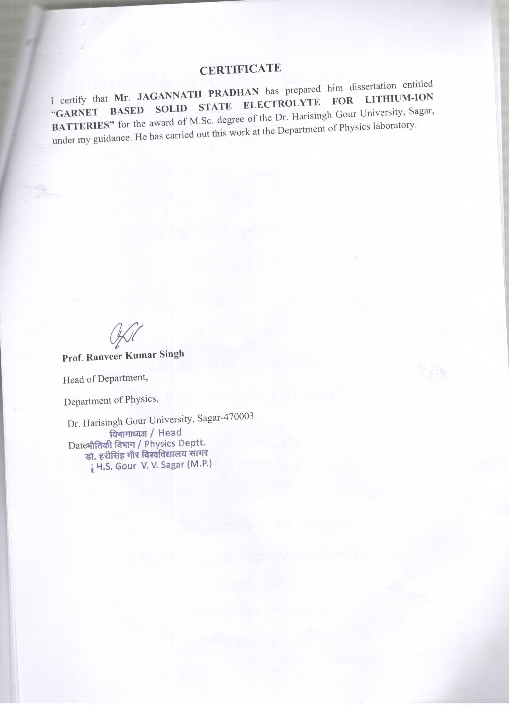 | 3. | Y18273008 | Jagannath Pradhan | Garnate based Solid State electrolyte for Lithium-ion Batteries | |