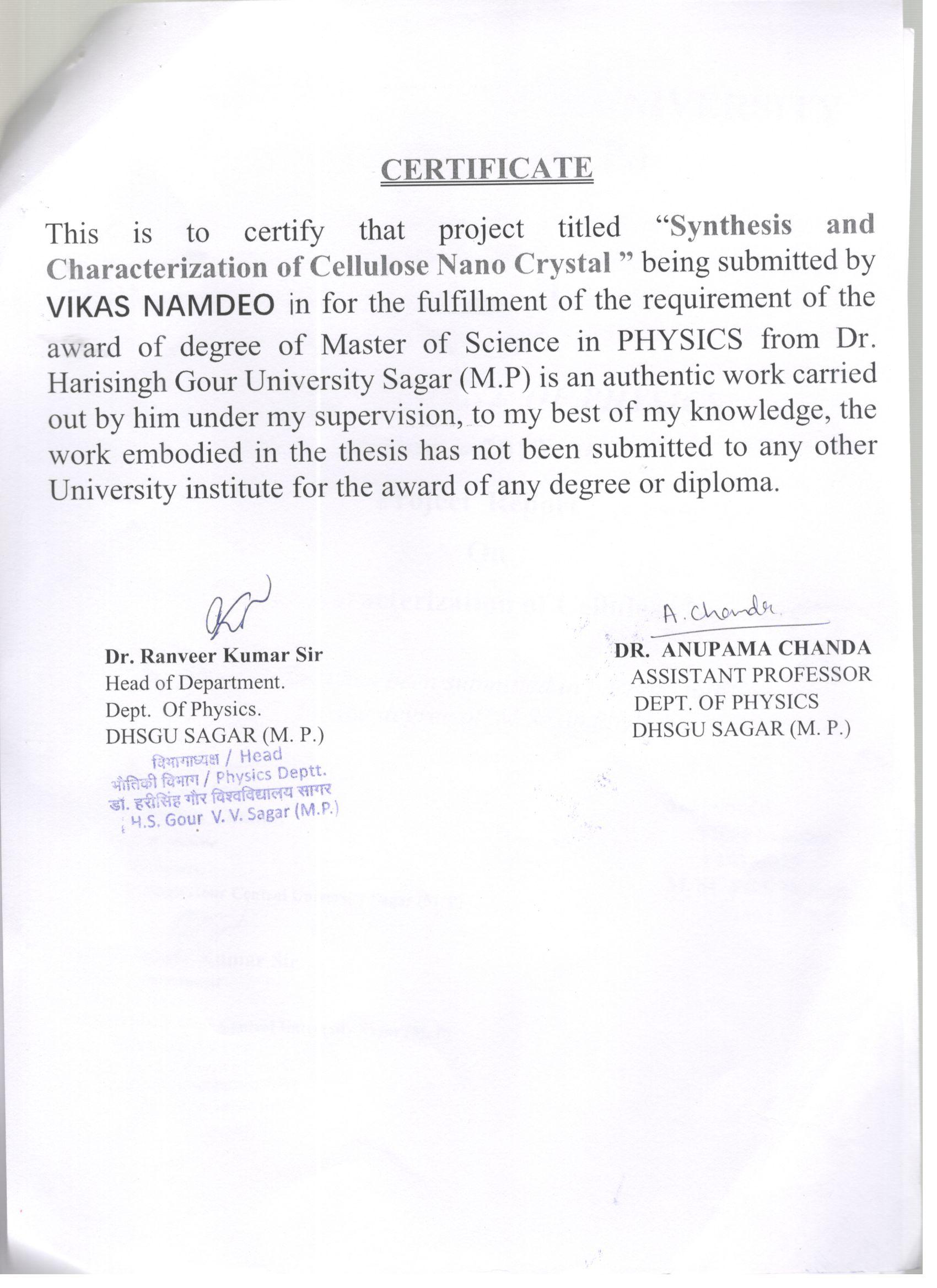 | 4. | Y18273025 | Vikas Namdeo | Synthesis & characterzation of cellulose Nano crystal | |